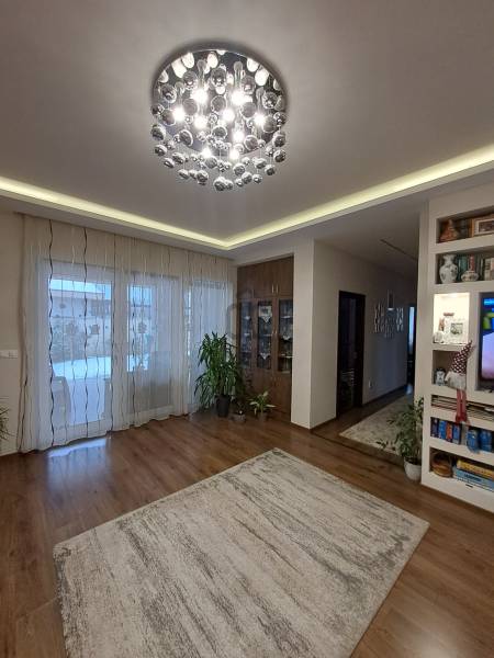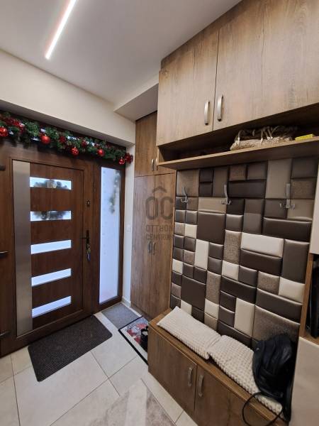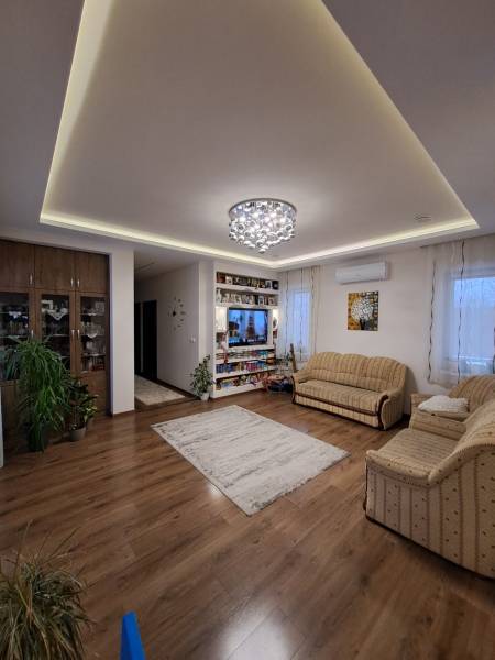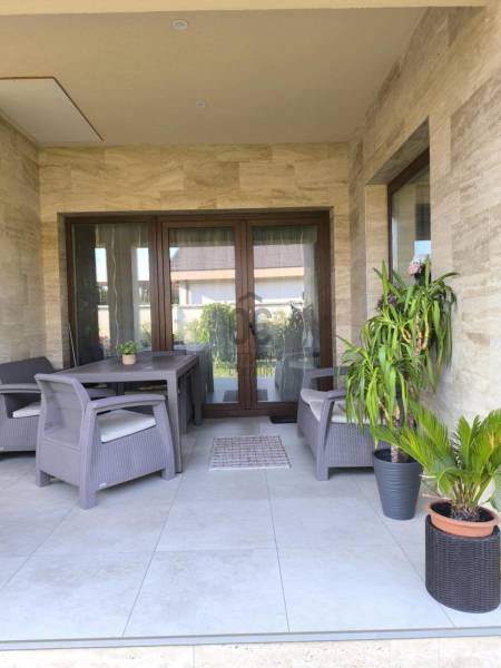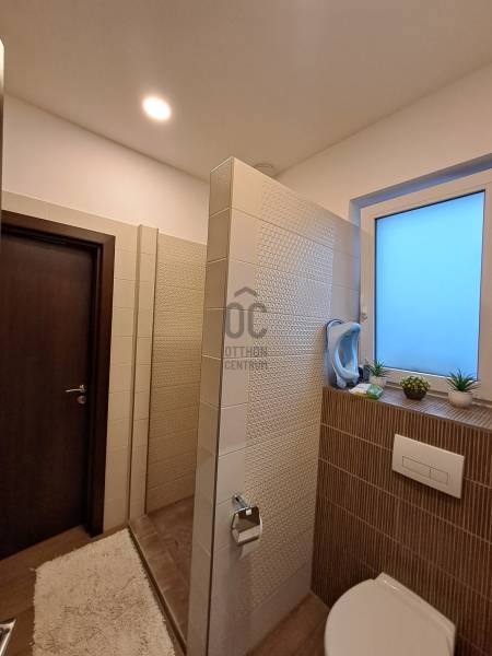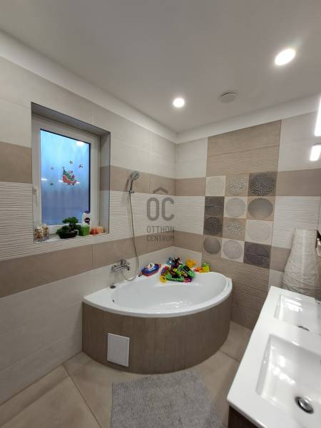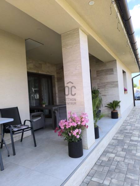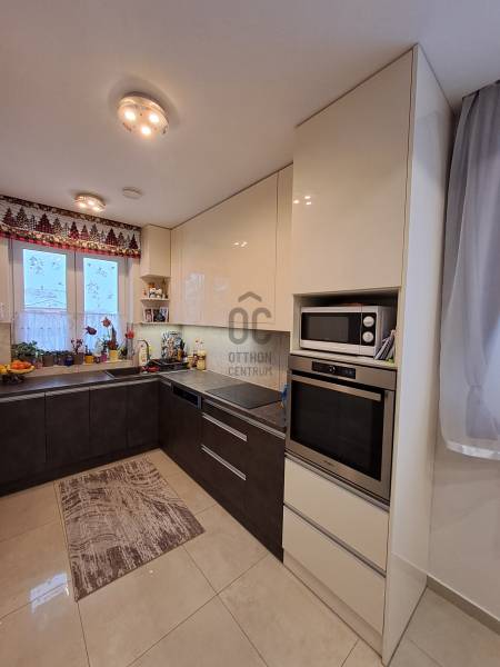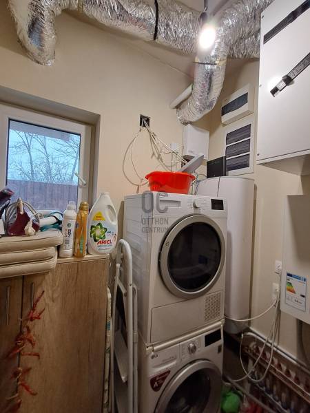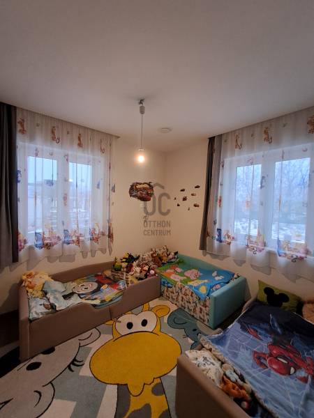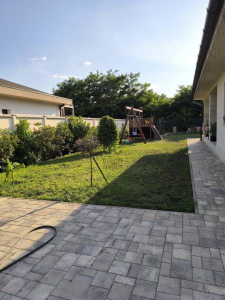 Eladó Debrecenben, a Gesztenye-lakóparkban, egy 2020. évben épült, földszintes, nappali amerikai konyha + 4 szobás családi ház!Eladó Debrecenben a Lencz-telep csendes, barátságos, fiatalos lakóparkjában egy újszerű állapotú, hőszigetelt, 110 nm-es nettó alapterületű családi ház, amely tökéletes választás lehet családosok számára. Az ingatlan amerikai konyhás, tágas, világos és modern kialakítású nappalival rendelkezik. A mennyezeti részben automata szellőztető rendszer és LED-világítás beépítésére került sor. A ház belmagassága a konyha-étkező részben 2,7 méter a többi helyiségben 2,84 méter. Az ingatlanba kiváló minőségű, többrétegű műanyag Schücco márkájú nyílászárókat, elektromos redőnyöket és központi porszívót szereltek be. Egyedi tervezésű, gépesített konyhabútor, illetve beépített szekrények lettek beépítve. A nagy belmagasság, a beépített bútorok, valamint szekrények eleganciát és praktikusságot kölcsönöznek az otthonnak. A fűtés elektromos kazánnal megoldott- minden helyiségben padlófűtés van- a nyári hónapokban a klímaberendezés biztosítja a kellemes hőmérsékletet. A házhoz tartozik egy 20 nm-es terasz és egy 20 nm-es nagyságú szerszámos kamra is. A kert szélső része automata öntözőrendszerrel van ellátva. A kertben a gyerekek részére kialakításra került egy játszótér is. A házban riasztó-rendszer került telepítésre, a kamera állások vezetékelve vannak.A környék biztonságos és csendes, kiváló választás családok számára. A közlekedési lehetőségek is kedvezőek, a buszmegálló egy rövid sétával megközelíthető.Parkolásra a ház előtt vagy az udvarban van lehetőség.Amennyiben hirdetésünk felkeltette érdeklődését, várjuk hívását a hét minden napján! |