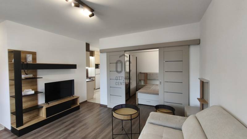Debrecen belvárosában, a Miklós utcában kiadó, egy most átadott új építésű liftes társasház lakása.Az ingatlan 38 m2 - es, modern elrendezésű.Helyiségei : nappali, konyha - étkező, szoba, fürdő + folyosó.Még most lett átadva, berendezve, ön lehet az első lakója.A bútorok, gépek, evőeszközök, stb... , minden vadi új, műszaki dolgok garanciás.Műszaki jellemzői : Rolóval szerelt 3 rtg műanyag ablakok, HŐSZIVATTYÚS FŰTÉS PADLÓ HŐLEADÓVAL, MENNYEZET HŰTÉS , fürdő zuhanyzós, mosó - száritógéppel szerelt stb.., ami nagyon fontos, hogy minimális rezsivel fog működni az ingatlan.A lakás gyakorlatilag azonnal birtokba vehető.Lehet bérelni az épület alatti teremgarázsban zárt garázst, díja : 30.000 FtMegbízható, magára és az környezetére igényes bérlőt / bérlőket keresünk, minimum 1 éves időtartamra.Szokásos 2 havi kauciót kérünk.Ha felkeltettem az érdeklődését, kérem, hívjon bizalommal. |