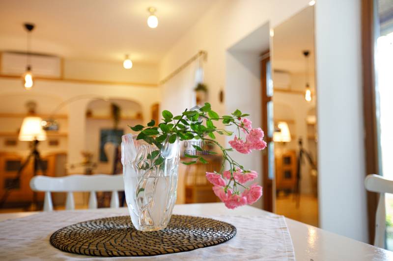 A Dunakanyar kapujában, csendes, rendezett utcában kínáljuk megvételre ezt a 100 éves, tornácos parasztházat, amely a múlt szépségét ötvözi a mai kor kényelmével.Az ingatlantól 5-10 perces séta távolságra van a gyógyszertár, orvosi rendelő, pékség, zöldséges, Tesco, bölcsőde és játszótérAz 53 m²-es (48 m²-es) otthon ideális választás egyedülállóknak vagy pároknak, akik meghitt, különleges hangulatú otthont keresnek.A ház két éve teljes felújításon esett át: új, világos konyha és fürdőszoba került kialakításra, természetes anyagokkal – hajópadlóval, mészkő burkolatokkal, fa nyílászárókkal. A fűtésről egy gyönyörű és hangulatos cserépkályha gondoskodik, de klíma és infrapanel is rendelkezésre áll. A gépesített konyhában mosogatógép, indukciós főzőlap, elektromos sütő és párátlanító is megtalálható.A ház legszebb része a tornác, amely tavasszal és nyáron igazi élettérként szolgál. Innen nyílik a kert, ahol gyümölcsfák (alma, ribizli, szőlő), lila akác és évelő virágok teszik otthonossá a környezetet.Az ingatlan jelenleg egyterű nappali–háló–konyha–étkezőként funkcionál (35 m²), de könnyen két szobássá alakítható. A tetőtér beépítésével további bővítési lehetőség kínálkozik.Ez a parasztház nyaralónak romantikus menedék, lakóháznak 1-2 fő részére kényelmes választás.???? Ha Ön egy olyan ingatlant keres, amely egyszerre különleges, felújított és azonnal költözhető, ne hagyja ki ezt az ajánlatot |