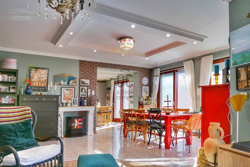 Szentendrén, kiválóan megközelíthető, gondozott, lakóparki környezetben található ez a tágas, világos, meleg, családias hangulatú otthon.Az ingatlan lakóparkon belüli elhelyezkedése is kedvező, mivel szélső ház, viszonylag nagy telek tartozik hozzá, illetve van garázs is.Az emeleti hálószobák mérete megengedné, hogy akár két szobát alakítsanak ki belőlük.Olyan, akár többgyermekes családoknak ajánlanám, akiknek fontos a biztonság, illetve a gyerekek önálló közlekedése az otthonuk és az iskola között. |