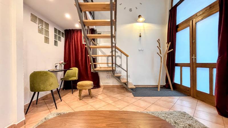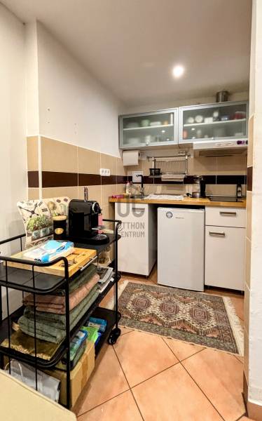 A Nyugati pályaudvartól pár perc sétára eladó egy jó állapotú, jelenleg lakásként berendezett és használt 24 nm-es ingatlan.Utcai bejárattal is rendelkezik, így ideális azoknak is akik irodaként, üzletként kívánják hasznosítani - a tulajdoni lapon üzlethelyiség megnevezésű.A kellemes hangulatú, rendkívül jó térkihasználású ingatlanban a 450 cm es belmagasságnak köszönhetően egy 13nm-es állógaléria került kialakításra, mely kényelmes, szeparált hálórészt biztosít. A nyílászárók fából készültek, thermo üvegezéssel és biztonsági fóliával!A fűtést jelenleg légkondicionáló berendezés biztosítja, de alternatívaként a gázt sem kötötték ki a tulajdonosok, a konvektoros fűtés is üzemképes!Kiváló lehetőség saját lakásnak, vagy egy vállalkozás üzemeltetéséhez is.Befektetési céllal is érdemes megtekinteni, könnyen - gyorsan kiadható ingatlan! |
