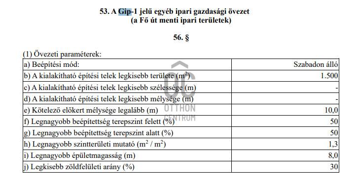 Telephely / ipari telek eladó Erdőkertesen – Fő út mellett, kiváló befektetésErdőkertesen, belterületen, a Fő út közvetlen közelében, az OIL! benzinkút szomszédságában eladó egy ipari-gazdasági övezetbe sorolt beépítetlen telek, kiváló láthatósággal és megközelíthetőséggel.A jelenleg építőipari vállalkozás telephelyeként használt, megosztás alatt álló 5000 m²-es telek fele, azaz 2500 m², ár alatt kerül értékesítésre.Övezeti besorolás: GIP-1 – egyéb ipari gazdasági övezet (Fő út menti ipari területek)Elsősorban ipari építmények helyezhetők elA gazdasági épületen belül lakás is kialakítható a tulajdonos, használó vagy személyzet részéreBeépítési paraméterek:Beépítési mód: szabadonállóLegnagyobb beépítettség (felszín felett): 50%Legnagyobb beépítettség (felszín alatt): 50%Szintterületi mutató: 1,3Legnagyobb épületmagasság: 8 mKötelező zöldfelület: min. 30%Közművek:Közművek a telken jelenleg nincsenekVillany az utcában elérhetőElőnyök:Főút melletti elhelyezkedés, kiváló láthatóságIpari, raktár, telephely, szolgáltató funkcióra ideálisBelterületi besorolásKiemelkedő befektetési lehetőségNe hagyja ki ezt a ritka lehetőséget!További információért és megtekintésért keressen bizalommal. |