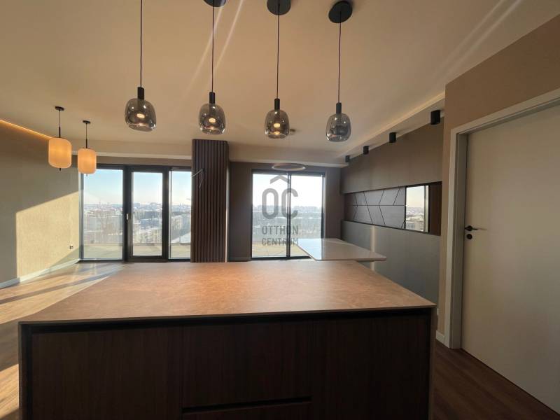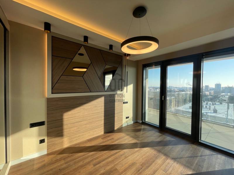 Eladó a város egyik legkülönlegesebb, új építésű társasházában egy VIII. emeleti, br. 92 m²-es, belsőépítész által tervezett, magas presztízsű lakás, 38 m²-es panorámás terasszal, három kijárattal.A lakás a projekt egyik kiemelt darabja: luxus kivitelezés, modern vonalvezetés, páratlan szolgáltatások.Főbb paraméterek:* tágas nappali + szeparált étkező* dizájn konyha minőségi gépekkel teljesen felszerelve* 2 külön nyíló hálószoba* gardrób* 2 modern fürdőszoba* hatalmas, 38 m²-es terasz csodás panorámávalA lakók szállodai élményt kapnak, többek között:- autólift a mélygarázsban- recepció és beléptetőrendszer- tetőterasz napozóval, medencével, jacuzzival, szaunával-házon belüli étterem-üvegkorlátos, tágas erkélyek minden lakáshoz-központi padlófűtés + mennyezeti hűtés-fűtés-egységes függönyök, modern burkolatok, elegáns fürdőkAZ UTOLSÓ EXKLUZÍV LAKÁSOK EGYIKE!Ha prémium minőségű, szolgáltatásokkal körülvett, modern és értékálló otthont keres a Nagyerdő kapujában – ez az Ön lakása.Projekt bemutatásaDebrecen belvárosát a Nagyerdővel összekötő sugárúton kerül kivitelezésre a helyi neves tervező házaspár által megálmodott, egyedi megoldású, könnyed vonalvezetésű, igényes, 60 lakásos társasház.Az otthonos lakások mindegyikére jellemző a fényes terek, kellemes időjárás-független hőmérséklet, csodálatos panoráma. A tervezésnél elsődleges szempont volt, hogy a lakók úgy érezzék magukat, mintha egy szállodában lennének:-lift nemcsak a társasházban, hanem a garázsban is (autólift)-portaszolgálat / recepció, beléptetőrendszer-tetőteraszon napozó, medence, szauna, jakuzzi, amit a lakók használhatnak-étterem.A lakások mindegyike:-erkélyes-konyhával és minőségi gépekkel felszerelt-fürdőszobák ízléses, modern kialakításuak-egységes függönyökkel ellátottak-padlófűtés és mennyezet fűtés-hűtésű.A budapesti sikeres beruházó hajdúsági gyökerekkel rendelkezik. Büszkeség számukra nemcsak Debrecen legkülönlegesebb lakóingatlanát fejleszteni, de mind a beruházást, mind az üzemeltetést cégcsoporton belül megvalósítani. Ezáltal vevőközpontú vásárlási folyamatot alakítottak ki először a régióban, így nem Ön finanszírozza a beruházást, hanem a beruházó és Önnek semmilyen anyagi kockázata nincs!Ne késlekedjen, legyen Ön is lakástulajdonos ebben a csúcskategóriás komplexumban! |