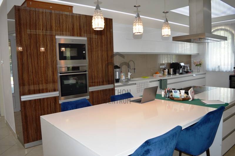 Alsó-Göd legszebb részén, szép villák ölelésében, a Dunától 2 percre eladó egy minden luxussal felszerelt családi ház.A teljesség igénye nélkül szemezgetve a listából:- nappali + 6 szoba (minden szobához saját fürdőszoba!)- 100 m2 medencetér (feszített víztükör) külön jakuzzival, szaunával, a galérián bárpulttal, biliárd asztallal- fűtött grillkonyha a nagy teraszhoz nagy, eltolható üvegajtóval kapcsolódva- borospince / buliszoba- télikert- a hőszivattyún túl gázcirkó, napkollektor + vegyes tüzelésű kazán, valamint kandalló a nappaliban- kút automata öntözőrendszerrel- két állásos garázs, automata garázskapu- modern konyhabútor gépészettel- egyedi fénytechnika és csillárok, világítótestek az egész házban.A ház 1995-ös építésű, 2014-ben teljes körű felújítás történt, majd a grillkonyha és a teljes kertfelújítás készült el 2018-ban, 2023-ban pedig napelemek kerültek a tetőre (amit szintén felújítottak előtte), a fűtésrendszer pedig kiegészült a hószivattyúval.A ház egy külföldi cég magyarországi rezidenciája, évente csak néhány alkalommal használják, tényleg nagyon megkímélt.További információk személyesen. |