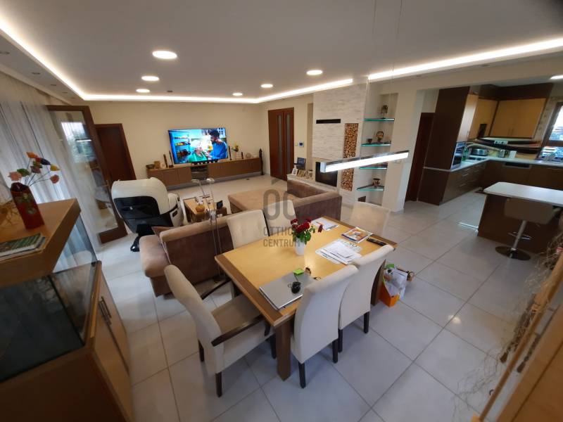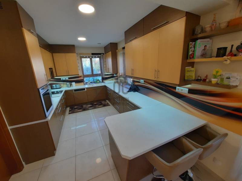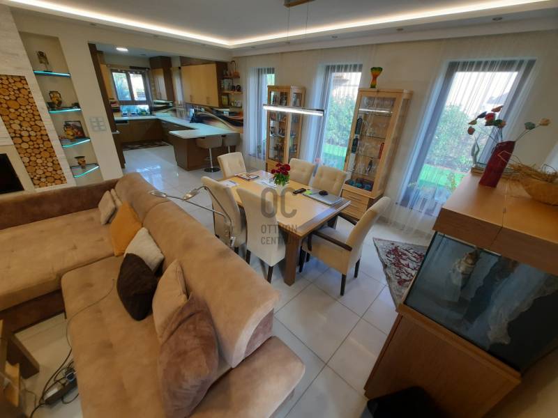 Hajdúszoboszló csendes kertvárosi övezetében exklusive családi ház eladó!Jellemzői : - a telek mérete 1807 négyzetméter- a ház nettó alapterülete 317,25 négyzetméter, mely magába foglalja a főépületet (242,69 négyzetméter) és a mellékhelyiségeket, mint a nyári konyha, szerszám tároló, kertibútor tároló és wc (74,56 négyzetméter)- az ingatlanban 3 hálószoba, hatalmas nagy nappali amerikai konyhával, étkezővel, 2 fürdőszoba, 2 toalet , mosókonyha, fedett és nyitott terasz található- a gépjárművek elhelyezésére egy Hörmann garázskapuval felszerelt 2 beállásos és egy 1 beállásos garázs, valamint egy fedett kocsibeálló lett kiépítve- a teljesen beépített teraszon 2 személyes karbonszálas szauna valamint különböző fittness eszközök szolgálják a tulajdonos kikapcsolódását- az épület téglából épült 70 cm vastag falazattal ( Porotherm 38 N + F tégla és 30 cm Porotherm N+ F tégla ) Austrotherm Grafit hőszigeteléssel- a tető Terrán zenit cserép, monolit vasbeton födém és fafödém- a ház napkollektorral felszerelt- a burkolat belül kerámia burkolat és laminált parketta, az egyik hálószobában fapadló, kívül fagyálló kerámia burkolat vízszigeteléssel- az épület melegvízellátását kondenzációs gázkazán és faelgázosító kazán biztosítja, emellett van egy nagyon hangulatos kandalló a nappaliban, valamint hőszivattyús padló- és mennyezetfűtés is- a házban légtisztító berendezés található, amely 8 óránként átszellőzteti az egész ingatlant- a központi porszívó megkönnyíti a takarítás nehézségeit- az energiatakarékosságról a kompakt izzós és fénycsöves energia takarékos világítás gondoskodik- a fa nyílászárók 3 rétegű argon gáz töltésű hőszigetelt üvegezésűek ( a belső nyílászárók borovi fenyőfából készültek )- az ablakok elektromos alumínium redőnyökkel felszereltek- a ház biztonságáról a teljesen kiépített 7 kamerából álló WiFi-s riasztórendszer és kaputelefon gondoskodik- a folyamatosan művelt kert egy \" beállt gyümölcsös \" 30 db gyümölcsfával és 40 tő szőlővel- a kert öntözéséhez szivattyús, fúrott kút is rendelkezésre áll amellett, hogy a teljes automata öntözőrendszer is ki van építve- a 400 nm-es befüvesített udvaron automata fűnyíró végzi a munkáját- nyáron alumíniumvázas medencében hűsölhetünk- kinti kemence és szalonnasütő is megtalálható az udvaronEz a csendes kertvárosi övezetben lévő exclusive családi ház nagyszerű lehetőséget rejt magában számos kényelmi és energiatakarékossági funkcióval , luxust ajánlva a leendő tulajdonosainak, amellyek egy átlagos otthonban nem találhatóak meg.Az ingatlan tulajdonosa saját maga részére álmodta meg ezt a házat , nagy hangsúlyt fektetve a minőségi anyagok ,a kényelem és a luxus kialakítására ,magas színvonalat képviselve minőségi anyagok felhasználásával, különös figyelmet fordítva az épület minőségére és részleteire. Ez egy plusz egyedi értéket ad az ingatlannak, mivel növeli annak élettartalmát, tartósságát ,és nem utolsósorban az értékét! Ezért az ingatlan vásárlása egy olyan lehetőség lehet, amelyben a minőségi építés és a kényelem összeolvadnak, és ideális lehet egy magas életszínvonalat kereső családnak.A HÍRDETÉSI ADATOK ÉS AZ ALAPRAJZ TÁJÉKOZTATÓ JELLEGŰEK !Amennyiben vásárláshoz hitelre is szüksége van független hitel tanácsadónk ingyenesen tud Önnek segítséget nyújtani a legjobb konstrukciók kiválasztásában és a folyamat lebonyolításában.Irodánk kereső ügyfeleinknek teljes körű szolgáltatást nyújt, szakszerű tanácsadással, energetikai tanúsítvány elkészítésével, hitelügyintézéssel és profi ügyvédi segítséggel.Abban az esetben ha az ingatlan felkeltette érdeklődését keressen bizalommal! #hajdúszoboszló #családiház #kertvárosi #többgenerációs #okosotthon #kert #luxus #kényelem |