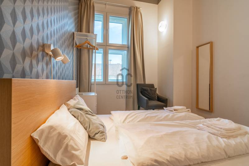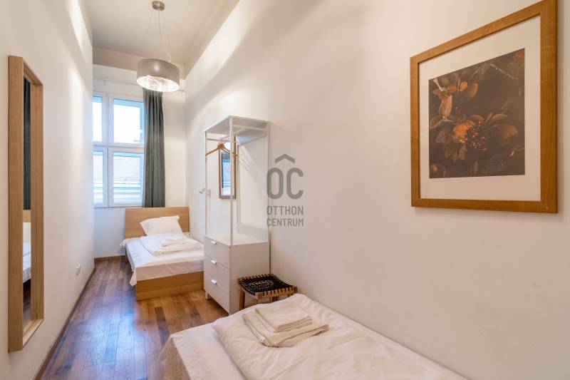 Budapest szívében a GOZSDU udvar SZOMSZÉDSÁGÁBAN, a Király utca 56. sz. alatt (VI. kerület Belső Terézváros) kínálok eladásra egy belső építész által megálmodott és magas minőségben kivitelezett, 75 nm-es, 4 teljes szobás, 2 külön bejáratú fürdőszobás, TELJESKÖRŰEN és MAGAS MINŐSÉGBEN FELÚJÍTOTT, utcai nézetű lakást.2 db külön bejáratú fürdőszobájában egyedi épített zuhanyt, WC-t és mosdót alakítottak ki.Minden helyiség külön klimatizált - lefolyóba bekötött cseppvíz elvezetéssel.Konyhája gépesített, beépített hűtőszekrénnyel, mosogatógéppel, főzőlappal és mikrohullámú sütővel, valamint 8 főre teljes felszereltséggel.Utcai ablakai teljesen hangszigeteltek - dupla sorosak, külső oldalon 3 rétegű-, belső oldalon 2 rétegű hőszigetelt műanyag nyílászárók.Elektromos hálózatát 3x25 Amperre bővítették.A lakás Magánszálláshely Engedéllyel és HRSZ-re szóló társasházi közgyűlési hozzájáruló határozattal is rendelkezik - 7 főre, 4 vendégszoba (2 db 12 m2-es és 1 db 13,1 m2-es utcai 1 db 8 m2-es udvari szobával). Lift nincsen, de az alacsony közös költség ezért kárpótol.Az ingatlan 12 havi részletre is megvásárolható, az ár ebben az esetben 119,9 millió forint, azaz 9,99 millió forint/hó. 3%-os hitel is megoldható!Bővebb információért várom hívását!Egyedi igényekre szabott lakáshitelekkel állunk rendelkezésére.Bankfüggetlen hitelcentrumunk az országban elérhető összes bank és hitelintézet ajánlatát versenyezteti az Ön számára díjmentesen.Munkatársaink nagy szakmai tapasztalattal várják Önt az előre egyeztetett időpontban akár a normál munkaidő után is. |