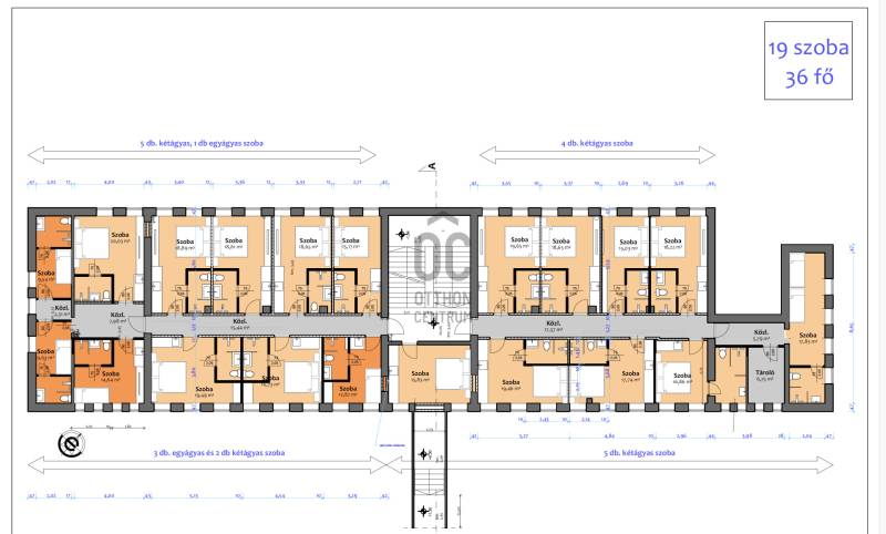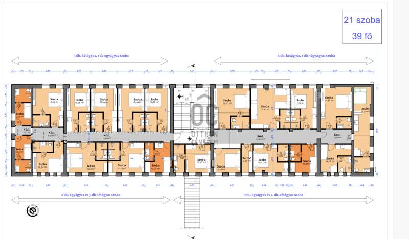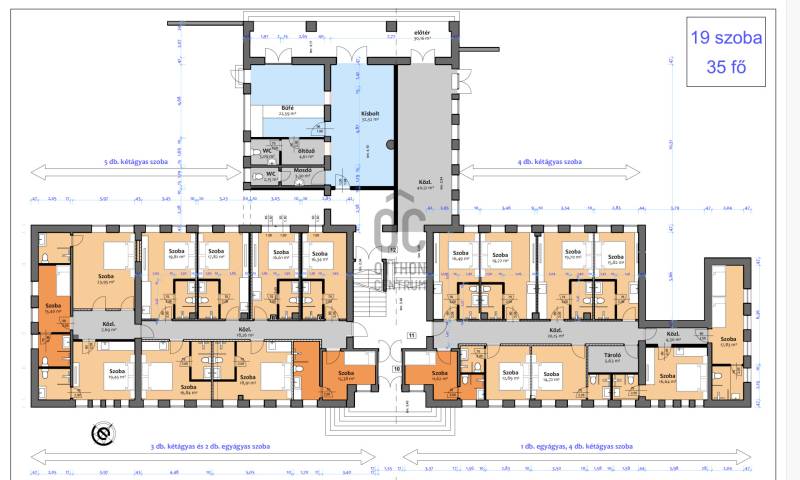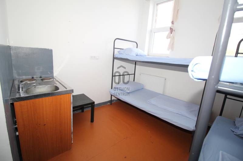 Megvételre kínálom a 10. kerület Óhegy részén ezt az 59 szobás munkásszállót!Az ingatlan összes hasznos alapterülete 1500 nm, amiben található 59 db szoba saját fürdővel, raktárak, konyha, recepciós pult és büfé, fedett dohányzó - pihenő, mosókonyha és egyéb kisegítő helyiségek. Jelenlegi kapacitás kb. 130-150 fő, 1-2-4 fős szobákban vegyesen, jellemzően emeletes ágyak felhasználásával.Ablakai korszerű, pár éve cserélt műanyag, hang és hőszigetelt nyílászárók.Fűtése házközponti, jelenleg vegyes tüzelésű kazán, amit fával fűtenek, lapradiátor hő leadókkal.A meleg víz folytonos ellátását két (kb. 1000liter/500 literes) HMV tartály biztosítja.Az ingatlan CÉG tulajdonban van, céggel együtt is megvásárolható!A vételár részét képezi a teljes bútorzat, gépesítés és az üzemeléshez szükséges egyéb ingóságok. |
