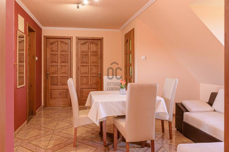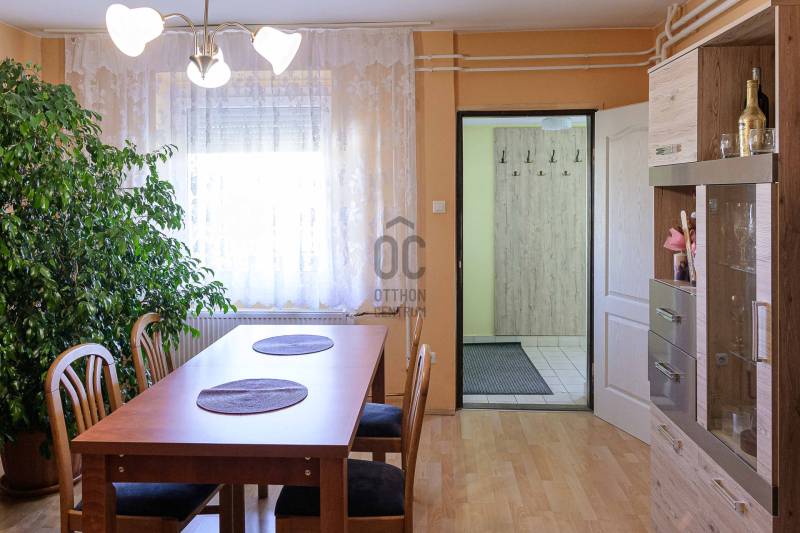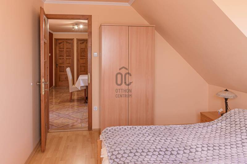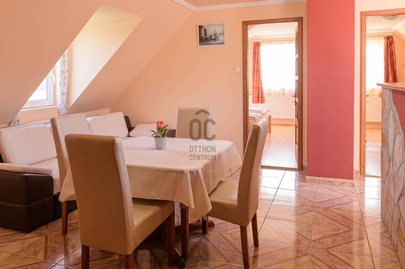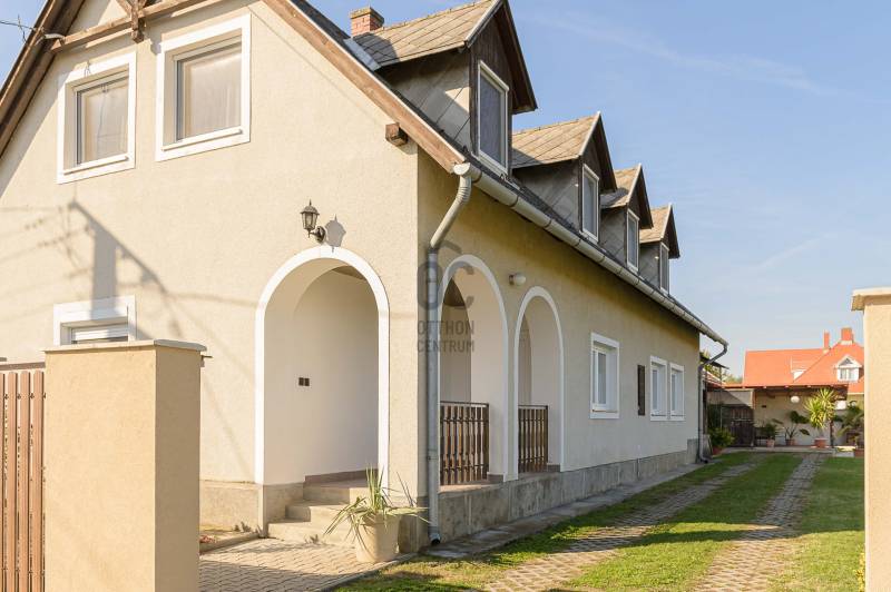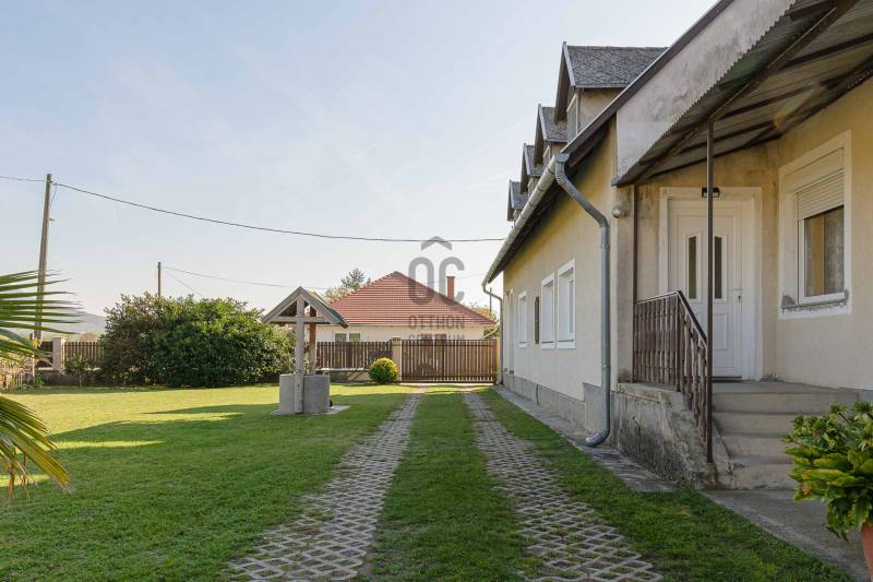 Nagycsaládosok és befektetők figyelmébe ajánlom! A Szent-György hegy lábánál Kisapátiban kínálom eladásra ezt a sok lehetőséget nyújtó családi házat, csendes, természet közeli környezetben.A 888m2-es sík, rendezett saroktelken álló épület, két szinten összesen 161m2 lakótérrel rendelkező családi ház, melyben 2 előszoba, 6 hálószoba, 2 nappali-étkező, 2 konyha, 2 fürdőszoba, kamra, kazánház, fatároló és egy hatalmas garázs lett kialakítva. Két bejárati ajtó ét család zavartalan együtt élése is lehetséges, vagy pedig a két szint külön-külön is kiadható albérletként. Fűtése radiátoros rendszerű, gáz kazánnal és vegyes tüzelésű kazánnal is fel van szerelve, a melegvizet gázbojler állítja elő.A ház falazata kő és tégla, teteje pala fedéses, a külső nyílászárók hőszigetelt műanyagok. A ház folyamatosan karban tartott, az alsó szint nemrég lett kifestve, új kerámia és laminált padló burkolatok lettek lerakva, megújult a konyha és a fürdőszoba is. Az utcáról 2 kapubeálló vezet a szépen karban tartott kertbe, ahol egy 20m2-es fedett terasz és grillező nyújt tökéletes helyet a kikapcsolódásra. A füvesített és dísznövényekkel beültetett kertből csodálatos panoráma nyílik a tanúhegyekre. A garázsban egyszerre több jármű tárolására is van hely.A Balaton-felvidék egyik legnépszerűbb települése Kisapáti, a Szent-György hegy keleti oldalán fekszik a Tapolcai-medencében, csendes, biztonságos és természetközeli környezetben. Remek elhelyezkedésének köszönhetően a Balaton part, Szigliget, Badacsony, Tapolca mind 5-10 perces autóútra vannak.Az ingatlan tulajdonviszonyai rendezettek, per,- és tehermentes, falusi CSOK, CSOK plusz és banki hitel is igényelhető.Három gyermek esetén 15 millió Forint falusi CSOK támogatás, 50 millió Forint CSOK plusz támogatott hitel együtt is igénybe vehető erre az ingatlanra.Amennyiben hirdetésem felkeltette érdeklődését, kérdése van vagy szeretné megtekinteni az ingatlant várom hívását! |