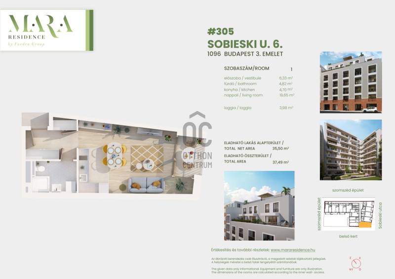 Projekt bemutatásaAzoknak, akik nem szeretik a több száz lakásos társasházakat, kitűnő lehetőség ez a 67 lakásos társasház Ferencvárosban.Dinamikusan fejlődő közvetlen környezet- további értéknövekedési potenciál!A LAKÁSOK 80%-a MÁR ELKELT!A MARA RESIDENCE-től egy sarokra számos villamosmegálló található (2,24, 28, 37, 51, 51A), de a Klinikák és a Nagyvárad téri metro megálló is csak kb.10 perc, illetve a 4-6-os villamos vonala is 10-15 perc sétával elérhető. Így a város bármely pontjára könnyen és gyorsan eljuthat.A belvárosi lokációnak köszönhetően, a közelben sokféle üzlet és szolgáltatás érhető el. Egy kellemes sétával kiváló kulturális és szórakozási lehetőségek között válogathatnak az környéken élők. Legyen szó egy jó szórakozóhelyről, múzeumról, moziról, vagy színházról, nem kell messze menni.A társasház közvetlen környezetében számtalan kellemes étterem, bár található, de aki csak egy kis levegőre vágyik az egy sarokra megtalálja a Kerekerdő Parkot vagy sétálhat egy nagyot a közeli Dunaparton.KÖNNYŰ, GARANTÁLT BÉRBEADHATÓSÁG, MAGAS BÉRLETI DÍJAKA környéken található, részben a közelmúltban épült egyetemi tömbök és irodaházak közelsége miatt egyre több külföldi diák, valamint a közelben, multinacionális nagyvállalatoknál dolgozó, stabil anyagi háttérrel rendelkező munkavállaló szeretne a területen lakást bérelni. Ugyanakkor a rendelkezésre álló bérbeadó, jó minőségű ingatlanállomány ezt az igényt egyelőre nem képes kiszolgálni.A bérleti díjak évről-évre emelkednek, ezáltal biztosítva a befektetési céllal vásárlóknak megfelelő hozamot.ÉRTÉKÁLLÓ, BIZTONSÁGOS BEFEKTETÉSA megújult lakókörnyezetet biztosító IX. kerület kiváló elhelyezkedésével, gondozott parkjaival, kellemes utcáival, szép épületeivel, kiváló infrastruktúrájával az utóbbi évtizedekben tömegesen vonzza az ide költözni vágyókat. Emiatt a lakások ára folyamatosan emelkedik és akkor sem kell aggódnia, ha újra értékesíteni szeretné majd, hiszen azt bármikor könnyen megteheti.HA NAGYOBB LAKÁSBA KÖLTÖZNIE A CSALÁDJÁVAL?Használja ki a Családi Otthonteremtési kedvezmény (CSOK), hiszen nálunk minden igényt kielégítő újépítésű családi otthonok közül is válogathat, melyekhez ki tudja használni a most elérhető állami támogatásokat. A CSOK mellé használja ki az áfa visszatérítést és illetékmentességet is!KÖZÖSSÉGI ÉLMÉNYA társasház 7.emeletének tetőteraszán egy 80m2-es közösségi grillterasz kerül kialakításra. Családi, baráti események kiváló helyszíne lehet majd ez kényelmes közösségi tér.VEVŐKIJELÖLÉS! Bármikor kiszállhat! Ha Ön úgy dönt, hogy már az átadás előtt eladná leszerződött ingatlanját, bármikor kereshet rá új Vevőt. Vevőkijelöléssel kötött szerződés esetén, szívesen átszerződünk az Ön által megjelölt ügyféllel. A vevőkijelöléssel kötött szerződés feltételeiről, várjuk érdeklődését.KEDVEZŐ FIZETÉSI ÜTEMEZÉS: 2 M Ft regisztrációs díj, majd 15 napon belül előszerződés aláírásakor a vételár 15%-ig kiegészítve, 85% pedig műszaki átadást követően. Tervezett átadása: legkésőbb 2027.01.negyedévHOGY ÖNNEK A LEGKÉNYELMESEBB LEGYEN AZ INGATLANVÁSÁRLÁS ÉS A HASZNOSÍTÁS EGYARÁNT:-BELSŐÉPÍTESZETI TANÁCSADÁS-LAKBERENDEZÉSI TANÁCSADÁS, LÁTVÁNYTERVEZÉS-HOME STAGING – Bérbeadásra felkészítés-KONYHA és BEÉPÍTETT BÚTOR TERVEZÉS, KIVITELEZÉS-RESALE és MÁSODÉRTÉKESÍTÉS-DÍJMENTES HITEL és CSOK ÜGYINTÉZÉS is része a szolgáltatásainknak.Várjuk megtisztelő érdeklődését |