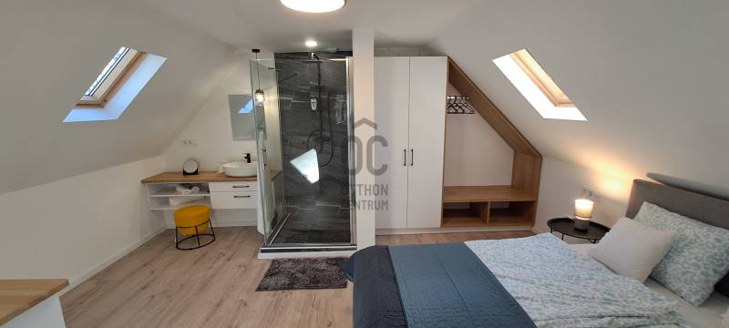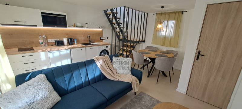 Tisztelt Érdeklődő!Ha Ön is a nyugalmat és a természet közelségét keresi, miközben befektetésben is gondolkodik, akkor ez a Makó Maros-parti üdülősorán elhelyezkedő, felújított, 2 az 1-ben nyaraló apartman tökéletes választás!A 384 m²-es telken található tetőtér beépítéses, tégla iker apartman, két különálló lakása egyenként 2+2 szobával, 40+40 négyzetméteres alapterülettel rendelkezik, így akár családok, baráti társaságok vagy vendégek fogadására is ideális. A nappali – konyhák a földszinten, míg a háló és a fürdő a tetőtérben került kialakításra. A tágas belső terek modern és igényes kialakításúak: a konyha és nappali járólappal burkolt, míg a hálószobák vízálló laminált padlót kaptak. A komfortot tovább növeli, hogy a hálószobákban saját mosdó és tuskabin található. A WC-k a földszinten kaptak helyet.A ház kívül-belül felújított, korszerű műszaki megoldásokkal felszerelt. Az elektromos padlófűtés és az okos Ariston bojler gondoskodik a kellemes hőmérsékletről, illetve a melegvízről. A padlófűtés wifin keresztül is szabályozható. A hőszigetelt műanyag nyílászárók, a tetőtér kőzetgyapot szigetelése és az épület külső hőszigetelése biztosítják az energiatakarékosságot és a hosszú távú fenntarthatóságot. A közművek: elektromos áram 3x20A lakásonként, jelenleg közös vízóra, de külön körön a két lakás, előkészítve almérők felszerelésére. Szennyvíz gyűjtése 1000-1000 literes tartályokban. Klíma előkészítés, tv antenna előkészítés, mind a két lakásban, illetve már telepített kamera az utcafronton, mely internetről vezérelhető.A Maros-part mindössze 200 méterre található, a városi strand, a kalandpart és a lombkoronasétány szinte karnyújtásnyira van. A városközpont pedig autóval 7 perc, kerékpárral 10 perc, gyalogosan 35- 40 perces sétával elérhető.Az apartmanok teljes berendezéssel kerülnek átadásra, így azonnal birtokba vehetők. A rendezett kertben a pihenést szolgálja majd egy leendő szauna, melynek az elektromos előkészítése megtörtént. Parkolás közvetlenül az apartmanok előtt biztosított.Akár saját nyaralóként, akár befektetési célra keres ingatlant, ez a lehetőség ritkaság a piacon. Ne maradjon le róla! Az apartmanok külön-külön is megvásárolhatók 29,9 MFt-os darabáron.Érdeklődjön most és tekintse meg személyesen!Makóról bővebben itt: http://mako.hu/makoi-seta/Legyen tisztában pénzügyeivel, mielőtt elkötelezi magát! Ebben díjmentesen az Ön rendelkezésére áll bankfüggetlen hitelközvetítőnk.Vevőinket profi és kedvező díjazású ügyvédi háttérrel is segítjük a szerződéskötés során.Az ingatlanról rövid bemutató videó is készült. Ha ezt a hirdetést az Otthon Centrum weboldalán nézi, akkor a videó azonnal indítható a képgaléria elején. Ha egy másik weboldalon találta ezt a hirdetést, kérem, nyissa meg az Otthon Centrum weboldalát, kattintson a „Regisztrációs szám keresése” menü pontra, és írja be ezt a regisztrációs számot a keresőbe: NY012367 Itt meg tudja tekinteni az ingatlanról készült videót és még több képet, vagy írjon nekem, és szívesen elküldöm a felvételt, képeket.#eladoingatlan #nyaralo #befektetes #otthoncentrum #modernotthon #pihenes #termeszetkozelben #okosotthon #ingatlanpiac #ocmako #kikapcsolodas #dreamhome #otthoncentrummako #veledmindenlepesnel #almokatepitunk #bluecottage #marospartiapartman #oc #biztositas #hitel |