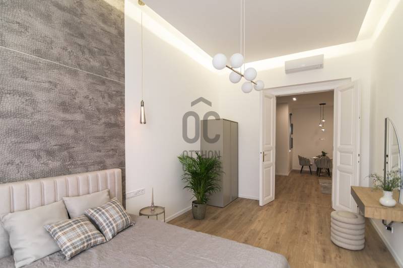 Budapest 6. kerületében, a Diplomatanegyed szívében kínálunk eladásra egy frissen, exkluzívan felújított, kiváló állapotú lakást, amely ideális választás lehet mindazok számára, akik értékes ingatlanba szeretnének fektetni.A lakás főbb jellemzői:- 81 nm, 2 szoba +amerikai konyhás nappali,- 3. emelet,- kiváló minőségű, luxus beépített anyagok,- gépesített konyhabútor (Gorenje sütő, hűtő és főzőlap)- 3,5 méter belmagasság,- hűtő- fűtő klíma,- Ariston bojler ,- liftes ház,- utcai kilátás,- 2 fürdőszoba,- a teljes berendezés az árbanAz ingatlanban található beépített bútorok és szekrények, valamint a LED hangulatvilágítás gondoskodik arról, hogy a lakás nemcsak esztétikus, hanem rendkívül funkcionális is legyen.A hőszivattyús fűtés és a klíma biztosítja a megfelelő hőmérsékletet a legforróbb nyári napokon és a leghidegebb téli estéken is. |