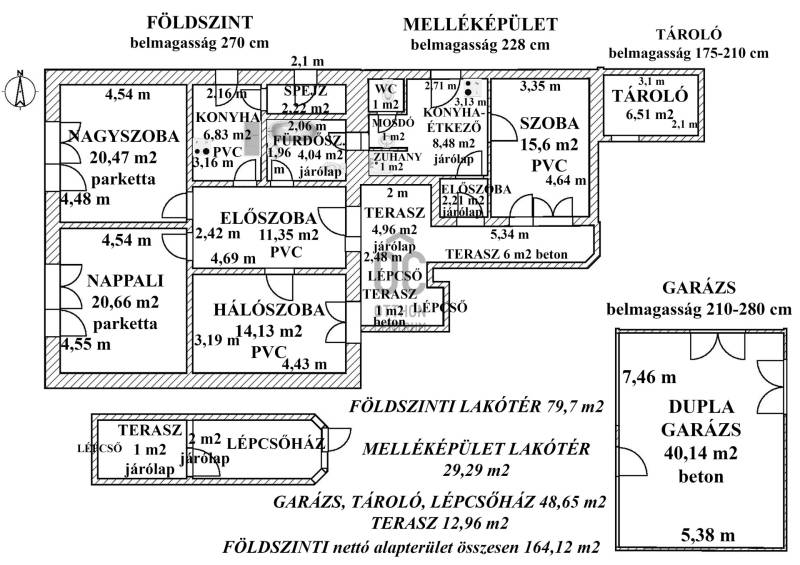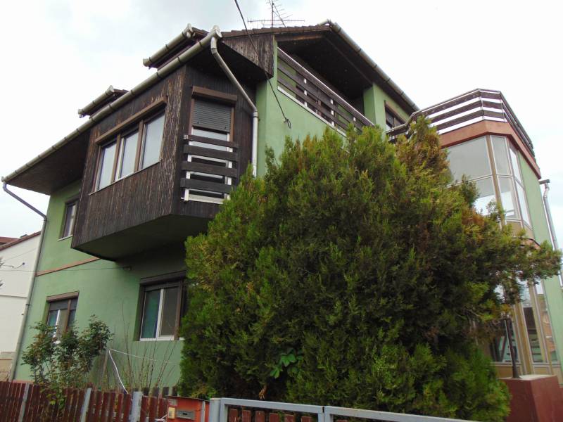 Eger Felsővárosban kínálunk eladásra egy ár-érték arányban különleges ajánlatnak számító, felújítandó családi házat, amely ideális választás lehet akár egy nagyobb család, akár összeköltözők számára, akik szeretnék saját ízlésük szerint kialakítani otthonukat, akár befektetőknek, akik négy lakásos társasházat is kialakíthatnak itt. Az 1029 négyzetméteres, sík telken elhelyezkedő ingatlan nettó alapterülete 373 nm, amelyből a melléképületek, tetőtéri alacsony sarkok levonása utáni hasznos lakótér is impozáns, 267 nm. A házban összesen 11 különnyíló szoba található, így elegendő helyet biztosít a család minden tagjának, vagy akár vendégek fogadására is. Az ingatlanhoz négy fürdőszoba tartozik. A tágas nappali világos és barátságos, ideális helyszín a közös családi programokhoz, míg a tetőterasz teljes kilátást nyújt a környező hegyvidékre, amely még inkább fokozza az ingatlan vonzerejét. A szerelőaknás garázs két autó számára biztosít parkolási lehetőséget. Az ingatlan környéke kiváló ellátottsággal és közlekedési adottságokkal rendelkezik. A csendes, rendezett kertvárosi környezet ideális választás lehet családok számára, akik a nyugalmat és a biztonságot keresik. A kisállattal is költözhető, kertkapcsolatos lakás lehetőséget ad arra, hogy a szabadban is eltölthessenek kellemes időt. A ház felújítandó állapota lehetőséget ad arra, hogy saját elképzelései szerint alakítsa ki otthonát, akár bővítési lehetőségek kihasználásával is.A ház jelen formájában három különálló lakással rendelkezik.-A földszinti lakás 1961-ben tufakőből épült, 79,7 nm-es, belmagassága 270 cm. A nyugatra tekintő utcai homlokzatot két tágas, 20 négyzetméteres, parkettás szoba foglalja el, ezenfelül egy 14 nm-es hálószoba, konyha, spejz, kádas fürdőszoba és egy méreténél fogva étkezőnek is alkalmas előszoba-hall találhatóak benne, az udvar felé pedig terasza van. Statikai állapota hibátlan, masszív, ugyanakkor itt a falak szigetelése szükséges a korszerűsítés során.-Az emelet-tetőtér egy belső kétszintes, 158 nm-es hasznos alapterületű lakás, amely 1987-ben halmajugrai gázbeton emeletráépítéssel készült. Az emelet a különálló, nyolcszögletű, üvegfalas lépcsőházból közelíthető meg, hasznos alapterülete 91 nm, ebben nincs benne a változó belmagasságú, tetőtéri lépcső alatti 2 nm-es tároló. Itt található a ház legnagyobb helyisége, a 32 nm-es, parkettás nappali. Déli oldalán szabadtéri erkéllyel, nyugaton pedig trapéz alakú zárterkéllyel rendelkezik, antik hatású retró bútorai külön vagy a házzal együtt is megvásárolhatóak. Mellette egy 19 nm-es, laminált padlós hálószoba, szemben egy kisebb hálószoba kerültek kialakításra. Ezen a szinten különálló wc és kédas fürdőszoba található, és a konyha-étkezőhöz itt is tartozik spejz.A tetőtér hasznos alapterülete 67, az alacsony részekkel együtt 89 nm. Két parkettás és két szőnyegpadlós hálószoba, egy zuhanyzós fürdőszoba-wc helyiség és a délnyugati szobához saját erkély állnak rendelkezésre. A délkeleti szobából közelíthető meg az üvegfalas lépcsőház tetején kialakított tetőterasz, ahonnan a négy égtáj felé nyílik kilátás a Nagy Eged-hegy, a felsőtárkányi Vár-hegy, a Bükk főgerince és a várost körülvevő dombok panorámájával.-A melléképületben található a saját teraszáról külön nyíló, harmadik, 29 nm-es garzonlakás: előszoba, konyha-étkező, szoba. A wc különálló, azonban a zuhanyzós fürdőszoba lefalazása itt jelenleg hiányzik, tehát némi belső átalakítás szükséges a teljes értékű lakás kialakításához.Az ingatlan egy régi, de funkcionális, nagy teljesítményű gázkazánnal, cirkófűtéssel üzemel, kivéve a garzonlakás hálószobáját, ez az egy helyiség külön gázkonvektoros. A gázkazán a pincében található, a műhelyből nyíló kazán helyiségben. A földszinti és az emeleti lakások külön-külön, illetve közösen is fűthetőek innen. A fűtés esetleges korszerűsítése az új tulajdonosra vár, ugyanakkor a nagy tetőfelület kiválóan alkalmas napelem telepítésre. A főépület nyílászárói műanyagok, részben redőnyösek, az emeletráépítés idejéből, mérlegelendő lehet, hogy közülük melyek szorulnak cserére. A garzonlakás fa nyílászárós.A fentieken kívül a lépcsőház alatti kisebb pinceszinti tároló, egy külön kerti tároló, ólak és a 40 nm-es dupla garázs tartoznak az ingatlanhoz, a bal oldali beálló alatt szerelőaknával. Valamennyi helyiség mérete, burkolata, elhelyezkedése a négy mellékelt alaprajzon megtalálható. A kertben többféle gyümölcsfa, veteményes és beton sütögetők találhatóak, az udvaron pedig fúrt kút. (Az északi telekhatárra a szomszédos háznak gázvezeték szolgalmi joga van bejegyezve, de ez nem vesz el hasznos részt a kertből.)A tehermentes ház csendes, kertvárosi mellékutcában, de a főút közelében található, a Tesco, az Obi és számos áruház, szaküzlet, posta, iskola, buszmegálló szomszédságában, sík helyen, ahonnan minden szolgáltatás szintkülönbség nélkül, általában pár perc sétával elérhető. Befektetők számára is figyelemre méltó a 255 ezer Ft-os, egyedi négyzetméterenkénti ára, amely tükrözi az ingatlan felújítandó, átlagosnál nagyobb beruházást igénylő állagát, ugyanakkor ez rendkívüli megtérülést kínál. Még a garázsok, tárolók stb. nélküli hasznos lakótér négyzetméter ára is csupán 355 ezer Ft, amely még mindig jóval átlag alatti. Amennyiben érdeklik a részletek, vagy szeretne időpontot egyeztetni a megtekintésre, bizalommal keressen! Szívesen válaszolok kérdéseire, és segítek Önnek meg