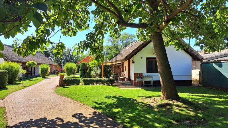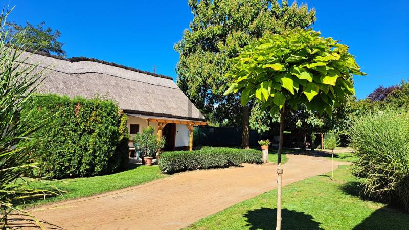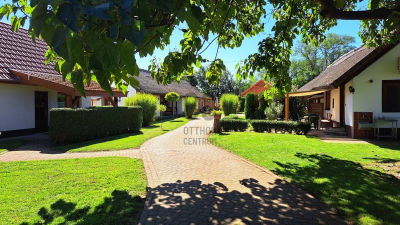 Az ingatlanpiac egyik legkeresettebb környékén, Jász-Nagykun-Szolnok vármegyében, Tiszafüreden eladó egy 5180nm-es mesebeli birtok, nádtetős parasztházakkal, melyek jelenleg igényesen berendezett apartmanként üzemelnek..Tiszafüred és Poroszló között 2020-ban készült el a kerékpárút, ezáltal teljesen körbe lehet kerékpározni a Tisza-tavat. A távolsági busz és vonatközlekedés kiváló a településen, a város közúti megközelíthetősége szintén kiváló a 33-as és a 34-es főútról, az M3-as autópálya 30 km-re fut.Idegenforgalmi és térségi központ a Hortobágy kapujában, igen széleskörű infrastrukturális ellátottsággal: bölcsőde, óvoda, általános iskolák, gimnázium, szakközépiskola, szakmunkásképző, gyógyszertárak, nagy áruházak (TESCO, LIDL, SPAR, Penny), szakorvosi ellátások, fizioterápiás szolgáltatások, benzinkutak (MOL, SHELL, OIL).Rövidesen megújuló termálstrand, kiváló szabadvizi strand, kerékpáros centrum, kitűnő éttermek, szolgáltatások.A telek 180x27m, körbekerített és három részre tagolódik:- Szálláshelyeknek kialakított klímás nádtetős parasztházak, egy parkosított udvaron helyezkednek el, A vendégek kényelmét szolgáló kiülők, teraszok, medence és egy hat állásos parkoló szolgálja. Ez a terület kb: 1.700m2- Parkosított udvar, ahol egy 200 m2 alapterületű lakóépület szerkezetkész állapotban tető alatt van. Ebből az épületből az új tulajdonos vagy további szálláshelyeket alakíthat ki, vagy akár lakóépületként is befejezető. A parkosított udvar területe. kb: 2.000 m2- Nyárfa liget a birtok végében, akár egy árnyas kemping kialakítására is alkalmas lehet. Területe kb: 1.300 m2A terület első harmadán három épületben hat apartman került kialakításra, melyek 2009 óta szálláshelyként üzemelnek. Két épület nádfedésű, vályog-tégla falazatú, a harmadik cserép fedéssel, téglából épült.A házak összközművesek, a fűtést-melegvizet házanként gázkazán biztosítja (összesen 3 db kombi gázkazán). Minden apartmanban klíma lett felszerelve. A három épület hasznos alapterülete 240m2.A nem csekély zöldterület öntözését kettő fúrott és egy ásott kút vize biztosítja.Miután a terület két szomszédos ingatlan összenyitásából alakult ki, minden közműből két csatlakozás van.A második területen 40% készültségű épület lehet a tulajdonosok otthona, igy közel vannak a vendégekhez, ám elszeparálva attól. Másik lehetséges felhasználás lehet egy wellness részleg és közösségi tér kialakítása a vendégek részére, ami a szezon megnyújtásában segít.Ezen a részen jelenleg egy kis konyhakertkert is van.Az ingatlan vételára a berendezést is tartalmazza.Ha felkeltettem érdeklődését, vagy kérdése lenne az ingatlannal kapcsolatban, forduljon hozzánk bizalommal!Díjmentes jogi szolgáltatásokkal és ingyenes bank független hitelközvetítéssel állunk vevőink rendelkezésére!Hétvégén értékesítési ügyeletet tartunk! |