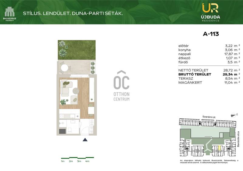 Projekt bemutatásaA Budapest XI. kerületében, a Barázda utcában megvalósuló Újbuda Residence nem csupán egy új építésű lakópark, hanem egy olyan innovatív fejlesztés, amely kivételes lehetőséget kínál mindazok számára, akik otthonukat vagy befektetésüket egy dinamikusan fejlődő, mégis nyugodt környezetben képzelik el.Ez a modern, 240 lakóegységet magában foglaló fejlesztés Újbuda folyamatosan megújuló környezetében, a Duna-parttól mindössze egy karnyújtásnyira található. Az épület kiváló választás lehet azok számára, akik a fővárosban szeretnének élni, de mégis közel a természethez és a vízparthoz. Az új lakások mellett tárolók és gépkocsi beállók is rendelkezésre állnak, ezzel biztosítva a lakók maximális kényelmét és praktikus életvitelét. A változatos méretű lakások között mindenki megtalálhatja a számára legmegfelelőbbet, legyen szó kisebb vagy nagyobb lakóterületről.A fejlesztés keretében egy fiatalok számára ideális, kisebb lakóegységekből álló épület is megvalósításra kerül, ami különösen vonzó lehet a fiatalabb generációk számára, akik a város nyüzsgése mellett szeretnének élni, ugyanakkor közel a természethez és a szabadidős tevékenységekhez.Az Újbuda Residence fejlesztésében változatos méretű és elrendezésű lakások kerülnek kialakításra, a 27 m2-es stúdiólakásoktól egészen a 70 m2-es, háromszobás lakásokig. Az épület alsóbb szintjein található lakások saját privát kertkapcsolattal rendelkeznek, míg a felsőbb emeletekről lenyűgöző panoráma nyílik a Gellért-hegyre. Minden lakás erkélyes, így a lakók élvezhetik a szabad levegő nyújtotta kényelmet és a környező zöldterületek látványát.A lakások kialakításánál elsőrangú belsőépítészeti megoldásokat alkalmaztak, amelyek több mint 4000 korábbi vásárlói visszajelzés alapján kerültek kidolgozásra. A belső anyagválasztékot a legjobb minőségű alapanyagokból állították össze, a lakások pedig egyedi igények szerint is alakíthatók, így mindenki megtalálhatja a számára legideálisabb megoldást.A rozsdaövezeti besorolásnak köszönhetően a vásárlók 5%-os áfa-visszaigénylésre is jogosultak, ami tovább növeli a fejlesztés vonzerejét.Az Újbuda Residence ideális választás fiatal egyedülállók, párok, kisgyermekes családok, valamint középkorúak számára, akik olyan lakóhelyet keresnek, ahol egyszerre élvezhetik a város nyújtotta lehetőségeket és a természet közelségét. A fejlesztés fiatalos, modern megjelenése, valamint a tágas parkok, zöldterületek biztosítják a nyugodt és kellemes életvitelt.A lakópark egyediségét tovább növeli a lakók számára kialakított tágas, dús növényzettel borított belső kert, amely tökéletes helyszínt biztosít a pihenésre és a kikapcsolódásra. Az épület alsóbb szintjein elhelyezkedő lakások privát kertkapcsolata pedig még inkább otthonossá varázsolja az itt eltöltött időt. |