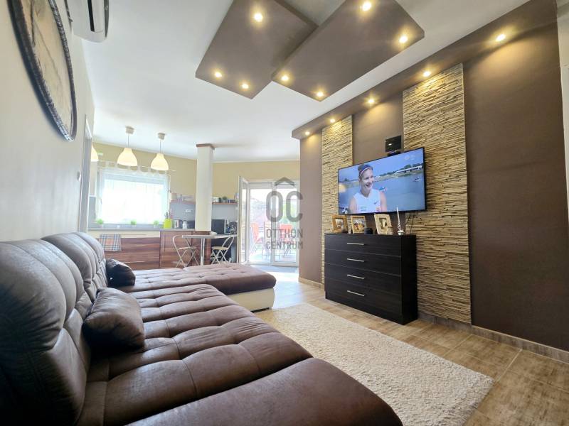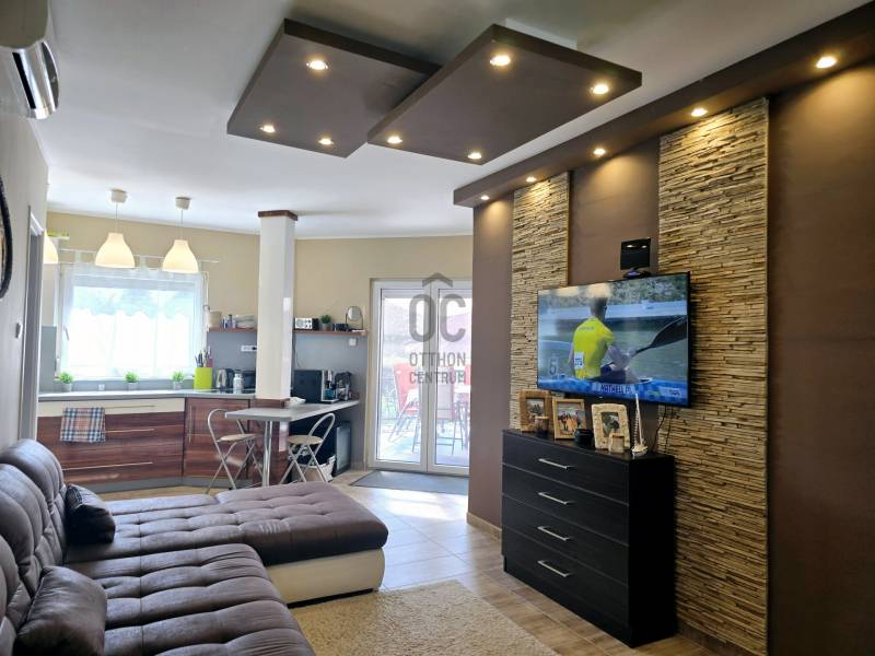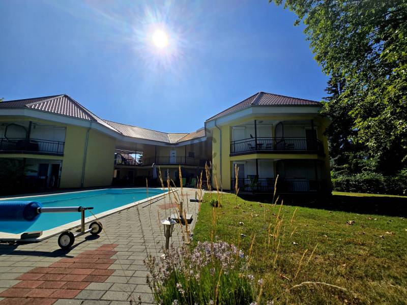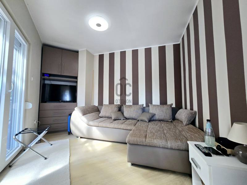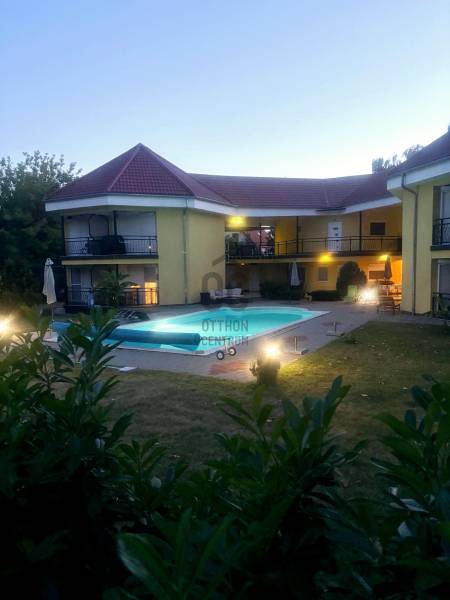 Szántódon, a déli part egyik legszebb, legnyugodtabb részén várja Önt ez a különleges nyaraló, ahol minden nap a szabadság és a nyugalom jegyében telhet. Itt nem kell kompromisszumot kötnie: a Balaton pár lépés, a kényelem pedig teljes.A mindössze néhány lakásos, kis lakóközösségben barátságos, jó társaság várja az új tulajdonost – itt valóban pihenésre lelhet.Lakótér: 2 különálló hálószoba és egy tágas, világos nappali biztosít kényelmes elhelyezkedést családnak, barátoknak. A 44 m²-es fedett terasz a nyári élet színtere –itt élvezheti a szabad levegőt esőben, napsütésben egyaránt.A hatalmas, fedett terasz előnyei:Ez a 44 m²-es fedett terasz szinte egy második nappaliként funkcionál – ideális a reggeli kávé elfogyasztásához, egy jó könyvvel való elvonuláshoz vagy esti vacsorákhoz barátokkal.Kényelmes étkező, pihenősarok is elfér rajta, ráadásul esőben és tűző napsütésben is használható.A közvetlen kertkapcsolatnak és a medencéhez vezető kijáratnak köszönhetően ez a tér valóban a nyári élet központja lehet. Gyermekek számára is biztonságos, árnyékos játszótérként szolgálhat.Ez a különleges méretű terasz nemcsak kényelmet, hanem értéknövelő luxust is ad az ingatlannak.Extrák:Saját kültéri medence a gondozott kertben – tökéletes a nyári felfrissüléshez.Fedett gépkocsibeálló a biztonságos parkolás érdekében.A berendezés prémium minőségű, minden darabja stílusos és időtálló – az ingatlan teljes berendezéssel együtt eladó, így csak a személyes holmiját kell hoznia, és már kezdődhet is a nyár.Gondozott kert, diszkrét növényzettelMinimális fenntartási költség, jól szervezett lakóközösség.Lokáció, ami ritka kincs:A Balaton partja, szabadstrand, éttermek és boltok csupán pár lépésre találhatók. Hajókikötő, kompátkelés, bicikliút pár percen belül – minden adott a kikapcsolódáshoz vagy aktív pihenéshez. Az ingatlan nem csupán egy nyaraló, hanem egy valódi balatoni életérzés – ahol a reggelt a teraszon, a napot a strandon, az estét pedig saját kertjében, a medence mellett töltheti el.Az ingatlan tehermentes, azonnal költözhető, teljes berendezéssel együtt eladó.Hívjon most – nézze meg személyesen, és engedje meg, hogy beleszeressen ebbe a különleges nyaralóba. |