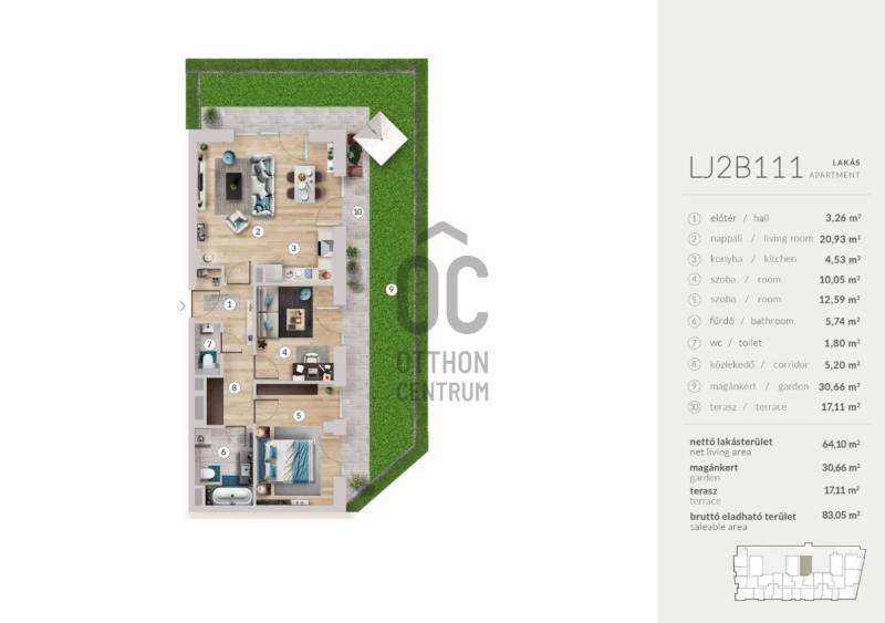 Projekt bemutatásaProjekt leírásA 147 lakásos My Garden 2 lakófejlesztés Budapest XIII. kerületének zöldövezeti részén, a Rákos-patak szomszédságában épül, ahol a modern élet és a természet harmóniája egyedülálló lakóélményt biztosít.A My Garden második ütem lakásai is magas szintű környezettudatosságot és kiemelkedő műszaki tartalmat képviselnek. Olyan fenntarthatósági megoldásokat alkalmazunk a lakóparkon, mint a megújuló energiaforrások, környezettudatos anyaghasználat, esővíz-újrahasznosítás, szelektív építési hulladékkezelés és felület hűtés-fűtés. A háromrétegű nyílászárók kiváló hő- és hangszigetelést biztosítanak, így a Le Jardin második ütemének lakásai alacsony fenntartási költségekkel és optimális komfortérzettel bírnak majd.A Váci úttól mindössze 10 percre található. A környék kifejezetten jó infrastruktúrával rendelkezik: oktatási intézményekben, bevásárlási lehetőségekben szociális-, sport- és egészségügyi létesítményekben bővelkedik a terület.A 6. emeleti penthouse lakásokból pazar kilátás nyílik a budai hegyekre, a kényelmet pedig biztosítja, hogy a nagy teraszon jacuzzi-nak kialakítható hely is található.A lakásokat átlagon felüli műszaki tartalom, energiahatékony- és gazdaságos üzemeltetés jellemzi.Környezettudatos beruházás, melynek részei a teljes mértékben- megújuló energián alapuló gépészeti megoldások,- a környezettudatos anyaghasználat,- a szelektív hulladékkezelés,- a környezettudatos vízfelhasználás,- az esővíz újrahasznosítása,- illetve a felület hűtés-fűtés.KÖZÖSSÉGI ELŐNYÖK:- közösségi nappali,- Business Corner,- közösségi BBQ hely,- fészer,- csomagpont.A fizetési ütemezés két részletben: 20% szerződéskötéskor és a fennmaradó 80% százalék a használatba vételi engedély kiadása után fizetendő a projektet finanszírozó bank felé.További információért keressen bizalommal! |