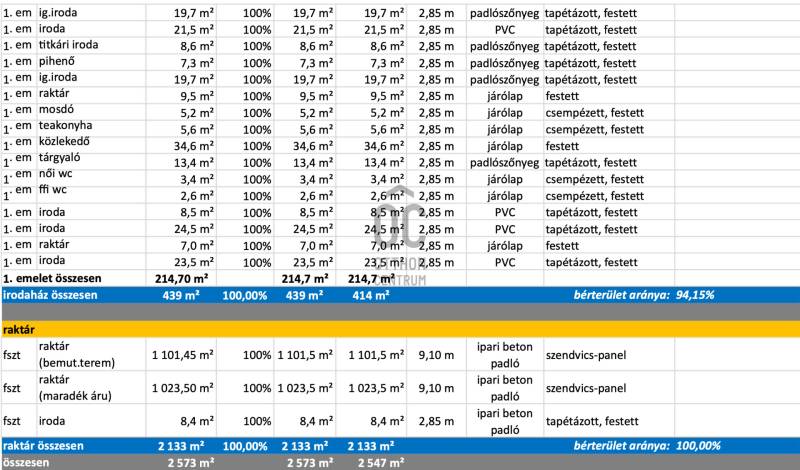Eladó felújított ipari csarnok és irodakomplexum Budapest III. kerületében!Kiváló elhelyezkedésű, összesen 2.133,35 m² alapterületű ipari csarnok eladó, hozzá tartozó 439,44 m²-es, kétszintes, modern irodai egységgel. Az ingatlan logisztikai központnak, nagykereskedésnek, raktárnak, összeszerelő üzemnek vagy gyártási tevékenységre is kiválóan alkalmas.Főbb paraméterek:Telekterület: Kamionforgalomra és körbejárhatóságra alkalmas, ki- és behajtás biztosítottParkolás: Külső parkolóhelyek minimum 20–25 gépjármű részéreCsarnok I: 1.101,45 m²Csarnok II: 1.023,50 m², belmagasság: 9,10 mIrodák összesen: 439,44 m²Földszint: 224,74 m²Emelet: 214,7 m²Tartalmaz: több tárgyalót, öltözőket, mosdókat, zuhanyzókat, konyhákatMűszaki jellemzők:Vasbeton födém és szerkezet acél vázzalLapostető bitumenes lemezzel szigetelveHomlokzat: hőszigetelt szendvicspanelTető: hőszigetelt, elektromosan nyitható szellőzőablakok3 db ipari kapuTeljesen körbejárható csarnok kamionnal isExtra előnyök:Az ingatlan 2022-ben teljes felújításon esett átKiváló műszaki és esztétikai állapotA tetőn található napelemrendszer biztosítja az áramellátástIdeális választás nagykereskedelmi, logisztikai, gyártási vagy raktározási célokra3–4 hónapon belül költözhetőÁr: 4.000.000 €Ne hagyja ki ezt a kivételes lehetőséget, ha modern, korszerű, azonnal használatba vehető ipari ingatlant keres Budapest frekventált, mégis könnyen megközelíthető részén!További információért vagy megtekintésért hívjon:???? +36 70 639 1972 |