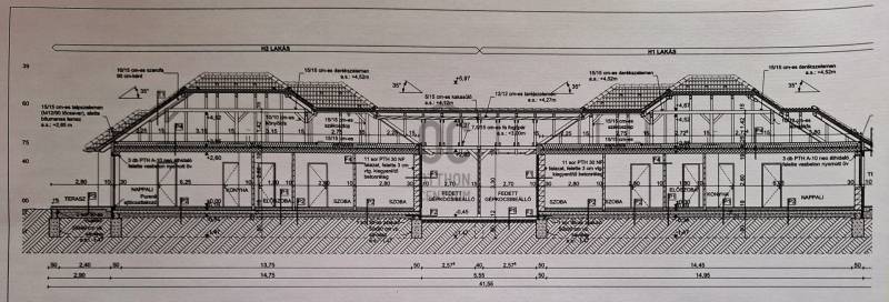 Új építésű, földszintes ikerházfél eladó Veresegyház Revetek városrészében – 2025. februári átadással!Veresegyház közkedvelt, kertvárosias övezetében (LKe-4 besorolás), csendes, családbarát környezetben kínálunk eladásra egy 380 m²-es telken épülő, földszintes, alápincézetlen ikerházat, melynek egyik fele már foglalható.A modern elrendezésű otthon minden helyisége egy szinten helyezkedik el, így kényelmes, akadálymentes mindennapokat biztosít – kisgyermekes családoknak és idősebbeknek egyaránt ideális választás. Helyiségek – lakásonként kb. 100–110 m² hasznos alapterülettel:• tágas nappali–étkező–konyha kertkapcsolattal (~30–33 m²),• világos előtér (3–5 m²),• fürdőszoba káddal, zuhanyzóval és WC-vel (~7 m²),• kamra (1 m²),• 4 külön nyíló, közel azonos méretű hálószoba (~10 m²/szoba),• háztartási helyiség (4 m²),• terasz (15 m²),• fedett gépkocsibeálló (15 m²).Műszaki tartalom:• Külső nyílászárók: minimum 7 légkamrás műanyag ablakok és bejárati ajtók, 3 rétegű hőszigetelő üvegezéssel, résszellőzőkkel, bukó-nyíló és fix kivitelben.• Tetőfedés: anyagában színezett, nagyszilárdságú betoncserép.• Falazat: 30 cm vastag külső teherhordó kerámia falazat, hagyományos falazóhabarccsal.• Hőszigetelés: 10 cm expandált polisztirol (EPS) homlokzati szigetelés, ragasztott és mechanikusan rögzített kivitelben. Az ikerház praktikus elrendezésének, modern műszaki megoldásainak és kiváló lokációjának köszönhetően értékálló befektetés és igazi családi otthon lehet! Átadás várható időpontja: 2025. február Ne maradjon le! Foglalja le már most új otthonát Veresegyház egyik legszebb részén! |