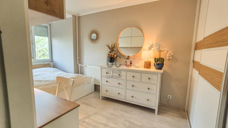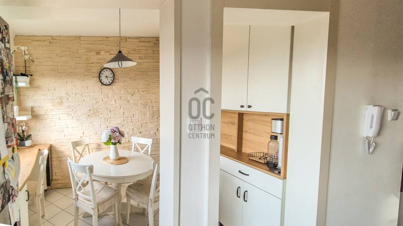 Otthon, ahová jó belépni – 71 m²-es, felújított lakás Újpalotán, panorámával és kiváló közlekedéssel.Amikor belépsz ebbe a 71 négyzetméteres (a tulajdoni lapon 68 m2 alapterülettel rendelkezik, de az átalakítás után, lemérve 71 m2 alapterületű a lakás), ötödik emeleti lakásba, azonnal megérzed azt a különleges, otthonos hangulatot, amit a jelenlegi tulajdonosok szeretettel és gondoskodással teremtettek meg. Ez nem csupán egy lakás – ez egy valódi otthon, ahol a részletek harmóniája már az első pillanattól megfog. A lakás jellemzői:A tágas tereknek és az átgondolt elrendezésnek köszönhetően kényelmesen élhető.Az évek során több felújítás történt: új burkolatok, friss festés, minőségi beépített bútorok teszik modernné és praktikusabbá a lakást.A bútorok és beépített gépek nagy része az ár része – így az új tulajdonos birtokba veheti, anélkül, hogy költözés után hosszas berendezésbe kellene fognia.Kényelem minden évszakban:A lakás klimatizált (1 kültéri és 3 beltéri egység gondoskodik a hűs nyárról), a fűtést távhő biztosítja minden helyiségben radiátorral. A klímát idén júniusban szakember tisztította, így frissen, gondozott állapotban várja új gazdáját.Ablak, kilátás, hangulat:A nyugati tájolású ablakok nemcsak a napfényt engedik be, de varázslatos látványt is kínálnak: a lakásból élvezhetők a naplementék, és ünnepnapokon még a budapesti tűzijáték is látható. Az ablakok korszerű, két rétegű műanyag nyílászárók redőnnyel, így a lakás csendes és jól hőszigetelt.Parkolás, közlekedés, elérhetőség:A ház előtt és mögött ingyenesen lehet parkolni.Több buszjárat (7E, 8E, 108E, 133E, 277, 979) pár perc sétára található, a belváros irányába buszsávban haladnak, így a reggeli csúcsidőben is meglepően gyorsan elérhetőek a belső kerületek.Szolgáltatások, boltok, környék:A mindennapi élethez minden kényelmesen elérhető közelségben van.+ SPAR (2 perc séta), Lidl (2 perc autó), ALDI (3 perc autó)+ 2 patika (az egyik 0–24 nyitva!)+ cukrászda, vegyesboltok, pékség és még sok más, szinte karnyújtásnyira+ Pólus Center, World Mall Hungary (Asia Center) és hamarosan a Bosnyák téri új komplexum is mind közel van.Szabadidő és közösség:Pár perc sétára több játszótér, közvetlenül a ház mögött focipálya, kültéri fitneszpark és kutyafuttató is található – ideális családoknak, kutyásoknak, vagy mindazoknak, akik szeretnek a friss levegőn mozogni.A ház rendezett, a lakóközösség barátságos és csendes, így valóban kellemes a lakókörnyezet.Ez a lakás azoknak szól, akik egy szeretettel gondozott, hangulatos otthont keresnek, ahol nem kell azonnal felújításba kezdeni.Hívjon bizalommal a hét bármely napján! |