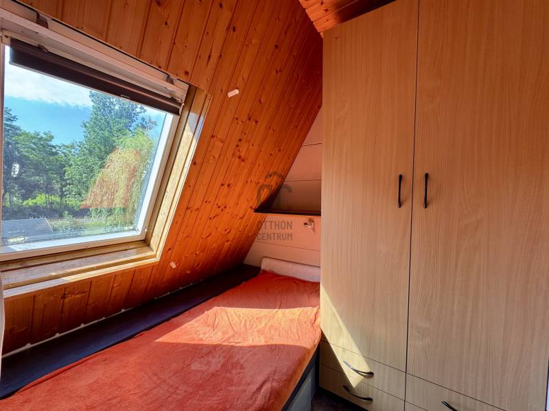 Megvételre kínálom ezt rendkívül világos, 2 szintes, könnyűszerkezetes nyaralót Balatonberény egyik zsákutcájában nem messze a parttól!Ha egyedi megjelenésű, de mégis praktikus, családias hangulattal rendelkező nyaralót keres, akkor ezt feltétlenül nézze meg!A képeken látható teljes bútorzattal értendő az ár!KÖRNYÉK ÉS KÖZLEKEDÉS:- Nyugodt, zöldövezeti környezet.- Jó közlekedés.- Vízpart kb. 500 méterre.- 3 perc sétára elérhető étterem.HÁZ LEÍRÁSA:- Az épület 1995-ben épült.- Könnyűszerkezetes.- A 459 m2 telken elhelyezkedő lakóépület bruttó 100 m2.- 4 szoba + nappalis.- Gépesített konyha (mosogatógép, elektromos főzőlap).- 2 szintes.- Nettó 75 m2.- Jó állapotú.- 2 fürdőszobával ellátott, melyhez 2 különálló wc rendelkezik.- 2 db hűtő-fűtő klímával felszerelt.- A meleget egy fa tüzelésű kandalló kályha, valamint a klímák biztosítják.- Alsó szinten műanyag, míg a felső szinten fa nyílászárókkal ellátott.- Teteje bitumenes zsindelytető.- 3 fázis áll rendelkezésre.- Belmagassága 265 cm.- Dél-nyugati tájolású.UDVAR ÉS KERT:- 459 m2 terület sík, körbekerített.- Az udvar hátsó részén megtalálható még 2 fa szerkezetű szerszámtároló.- Optimális, könnyedén karbantartható.Irodánk teljes körű, ingyenes szolgáltatást nyújt kereső ügyfeleinknek.Szakszerű tanácsadással, ingyenes hitel és CSOK ügyintézéssel, energetikai tanúsítvány elkészítésével és kedvező díjszabású ügyvéddel nyújtunk segítséget!További információkkal, és a megtekintéssel kapcsolatban várom HÍVÁSÁT a hét minden napján! |