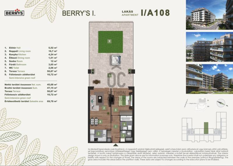 Projekt bemutatásaA XI. kerületi Bartók Béla úthoz közel épülő lakópark egy csendes, nyugodt környezetet kínál a város forgatagához közel. Az újbudai városrészben kialakított új lakónegyed kiváló közlekedési kapcsolatokkal rendelkezik. A zsákutcából nyíló elhelyezkedés biztosítja a forgalommentes, zavartalan lakókörnyezeti életet.A lakópark elhelyezkedése ideális azok számára, akik gyorsan és kényelmesen szeretnék elérni a város bármely pontját. A 4-es metró közelsége, az 1-2 perc sétatávolságra elérhető villamosok és a környéken közlekedő nappali és éjszakai autóbuszjáratok kiváló közlekedési lehetőséget biztosítanak. Az M1-es és M7-es autópályák közelsége, vagy a Kelenföld vasútállomás megkönnyíti az ország minden részébe, kiemelten a Balatonhoz és a Velencei tóhoz tervezett utazásokat.A legmodernebb mennyezeti hűtő- fűtő rendszernek köszönhetően alacsony fenntartási költségek várnak. A zöldtetők és az épület körüli zöldterületek nemcsak természetes hőszigetelést adnak, de a közösségi életet is támogatják.A gyönyörű kilátás nyugalma a városi nyüzsgés harmóniájával. A Berry’s minden lakásához tartozik loggia, erkély, vagy terasz!Várható műszaki átadás: 2027 vége |