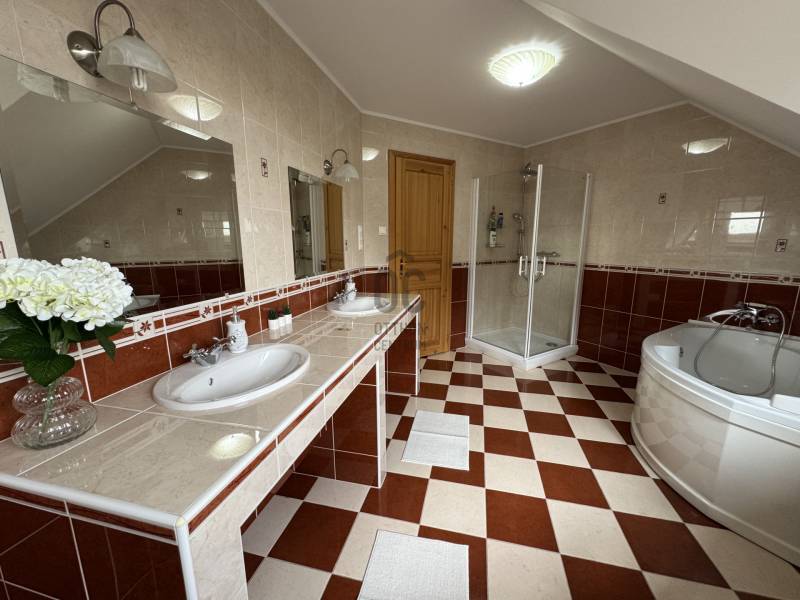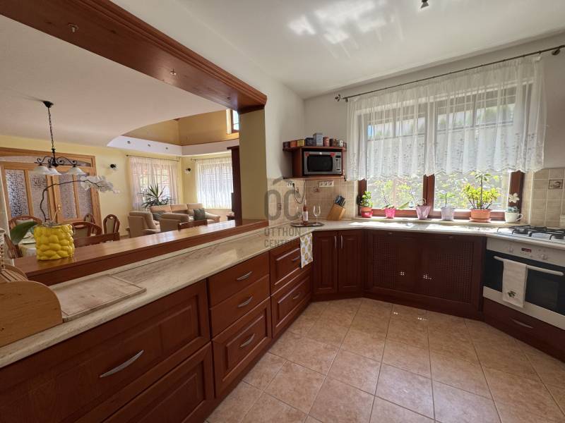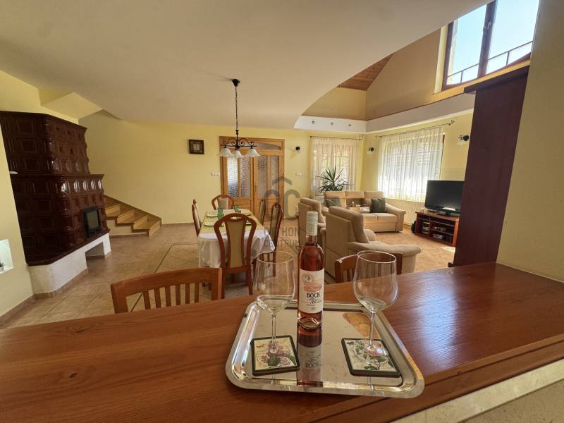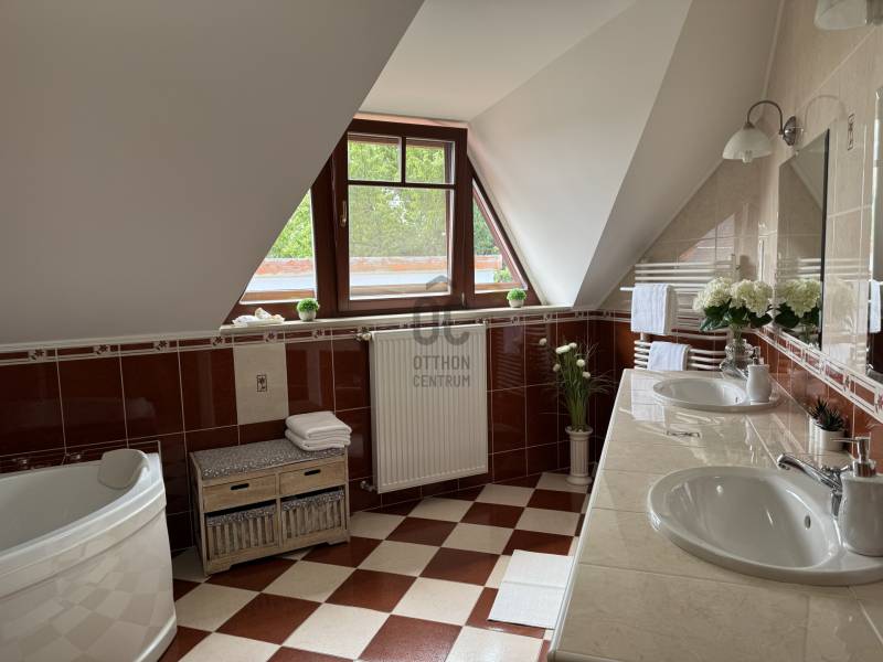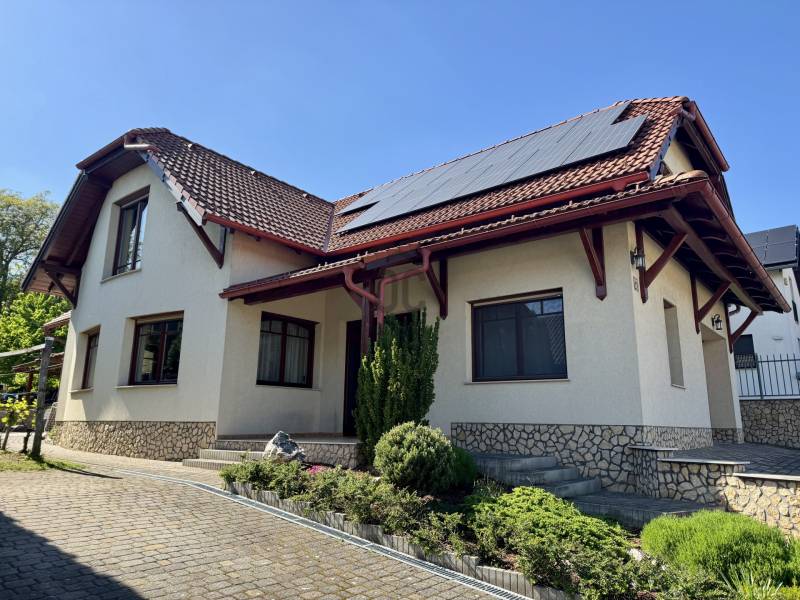 Különleges és kifinomult otthon Csolnokon – ahol a kényelem találkozik a fenntarthatósággal!Az ingatlanról:Eladó Csolnok központjában egy minden igényt kielégítő, belső liftes családi ház, amely a modern technológia, a magas minőség és a gondosan megválasztott anyagok tökéletes egységét kínálja.Ez az otthon a legapróbb részletekre is kiterjedő figyelemmel épült, ami már a szerkezeténél is látszik: a 44-es porotherm H téglafalak és az 5 cm-es dryvit szigetelés a kiváló hőszigetelés alapját adják, amit a tető 15 cm-es ásványgyapot, a födém pedig 30 cm-es szigetelése tesz teljessé. Ennek köszönhetően a ház B energetikai minősítést kapott, így a fenntartása rendkívül gazdaságos.Energiatakarékosság: A 96 Amperes kiépített hálózat és a 20 darabos napelem rendszer (455W/panel) nem csak a jövőre szól, hanem jelentősen csökkenti a rezsiköltségeket. Az elektromos fali-autótöltő pedig a környezettudatos életmódot segíti.Kényelem és komfort: A házban található lift megkönnyíti a közlekedést a szintek között, a beépíthető galéria pedig további életteret adhat. A fűtésről kondenzációs gázkazán és a hidegebb napokon cserépkályha gondoskodik, az alsó szinten padlófűtéssel, ami igazi otthonos érzetet ad. Nyáron a 2 légkondicionáló biztosítja a kellemes hőmérsékletet. A beépített infraszauna pedig a kikapcsolódásról gondoskodik.Minden helyiségben szúnyogháló és alumínium redőny található, a nagy ablakoknál ráadásul motoros redőny került beépítésre. A riasztórendszer szintenként vezérelhető, a biztonságot pedig az elektromos autókapu és garázsajtó garantálja. A házban 14 darab, kézzel készített fenyőfa ajtó gondoskodik a meleg, természetes hangulatról. A gondozásmentes kerítés és a rézzel burkolt szél-oromdeszkák.A fűtés távvezérelhető Bluetooth-on keresztül, így otthonról távol is könnyedén szabályozhatod a hőmérsékletet.Elhelyezkedés:Az ingatlan Csolnok nyugodt, csendes községében, a központhoz közel, mégis kellemes, zöld környezetben található. A gyalogosan is megközelíthető közelségben van a bölcsőde, óvoda, iskola, orvosi rendelő, gyógyszertár, boltok, és számos szabadidős létesítmény (uszoda, sportcsarnok).A település kiváló közlekedési adottságokkal rendelkezik: Dorog 5 km-re, Esztergom 13 km-re, míg Budapest mindössze 39 km-re található. A Budapest-Esztergom vasútvonal autóval 10, tömegközlekedéssel 15 perc alatt elérhető. |