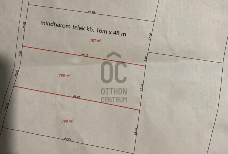 Dömsöd Dabi részén 2184 m2-es telek kerül most értkesítésre.Ez a terület most épp átalakulóban van — a földhivatalnál már folyamatban a három részre osztás, és ha minden papír a helyére kerül, három különálló telek születik belőle, (797 m2, 798 m2, 798m2, mindhárom telek kb. 16 m x 48 m )Mindháromra kétlakásos ház építhető.Belterület, kivett beépítetlen terület.Övezeti besorolása Lke-1Beépíthetőség: 30%Megengedet épület magasság: 4,5 mKözművek: Villany és intetnet az után a telek előtt. Víz keresztutcánál kb. 200-250 méterre.Gáz kb. 50 méterre az utcán.Csatorna, (átemelő rendszeres), utcán, telek előtt.\"Az Lke-1 építési övezetbena) a 600 m2 területű vagy 600 m2 – nél kisebb területű építési telken (az összes épületben) összesen legfeljebb 2 önálló fő rendeltetési egység, és ezen belül legfeljebb 1 lakás vagy üdülő helyezhető el,b) a 600 m2 területnél nagyobb építési telken (az összes épületben) összesen legfeljebb 3 önálló fő rendeltetési egység, és ezen belül legfeljebb 2 lakás vagy 2 üdülő helyezhető el,c) állattartó rendeltetés kiszolgáló rendeltetésként, kiszolgáló épületben vagy melléképítményben helyezhető el,d) a megengedett legnagyobb épületmagasság oromfalas épület esetében 5,0 méter.\"A Duna Holtág csupán 250 méterre van — egy kellemes séta, és máris ott van a vízpartnál. Horgászok, természetkedvelők, nyugalmat keresők — vagy éppen a jövőbeli lakók — garantáltan értékelni fogják ezt a közelséget.Ez a hirdetés az Otthon Centrum Árgaranciás csomagjának része, melyről bővebb információt a http://www.oc.hu/felezocsomag weboldalon talál.Ez az ingatlan a \"Felező csomag\" megbízási portfólióhoz tartozik. Részletek az Otthon Centrum weboldalán. |