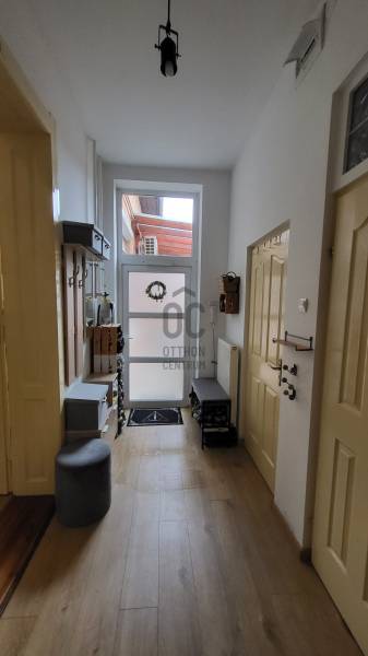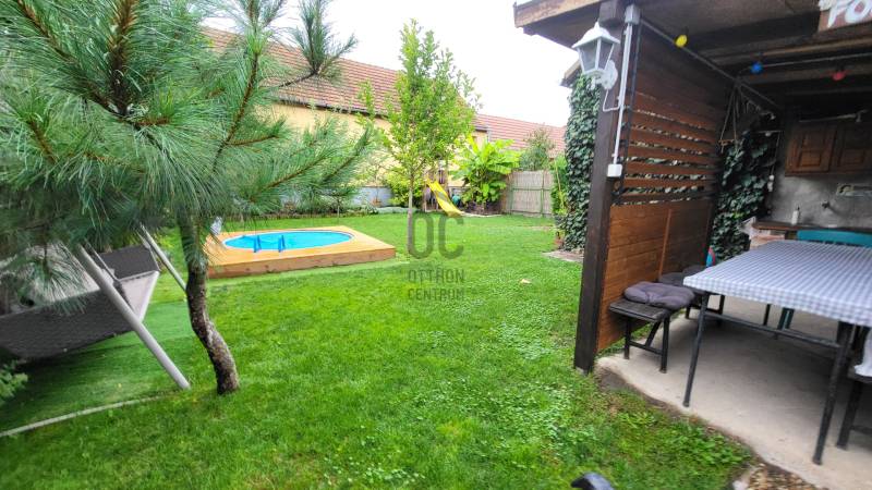 Debrecen kedvelt belvárosi részén eladó egy kitűnő állapotú és elrendezésű, 90 m²-es, napfényes házrész önálló terasz kapcsolattal. -beton alapon 50 cm-es tégla falazat +10 cm-es hőszigetelés,-új tetőszerkezet betoncserép héjazattal-felújított elektromos hálózat-műanyag nyílászárók, redőny, klíma-fűtése: kondenzációs kazánnal-90 m² alapterület + 11 m² terasz-76 m² saját pince (több helyiség kialakítással, sportolásra, borospincének, stb)-160 m² elkerített, saját parkosított kert öntözőrendszerrel, 240x90-es süllyesztett medencével-20 m²-es faszerkezetes garázs-filagória sütőhellyelTökéletes infrastruktúra, belvárosi lokáció, minden a közelben. Csendes környék, kellemes otthon. |