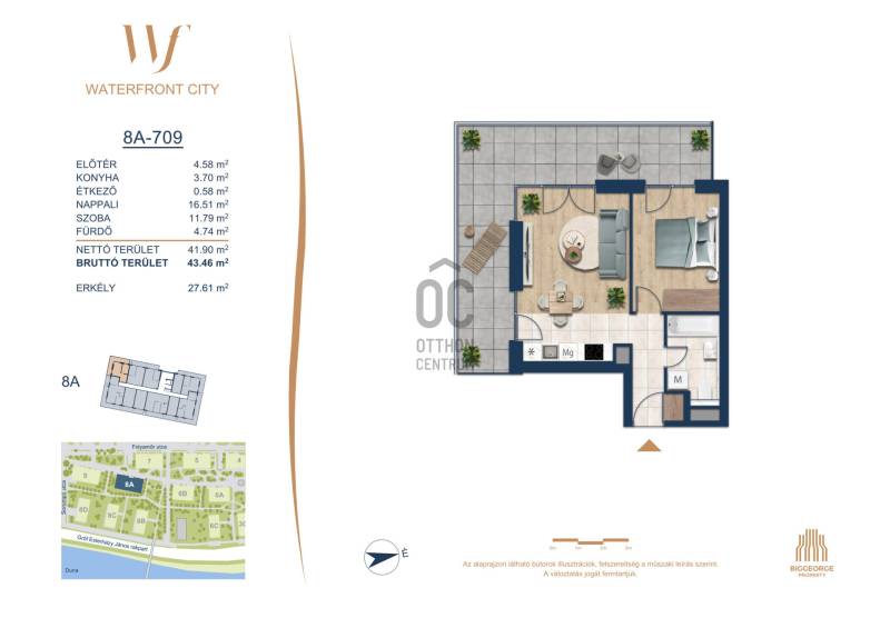 Projekt bemutatásaA projektrőlA Waterfront City egy új, modern városnegyed a 3. kerületben, ahol a természet közelsége és a városi kényelem tökéletes egyensúlyban van. A Duna-part közvetlen szomszédságában elhelyezkedő fejlesztés különleges atmoszférát kínál: a sétányt új épületek határolják, üzletekkel, kávézókkal és szolgáltatásokkal, amelyek élhető közösségi teret teremtenek.A 13 emeletes lakóépületből lenyűgöző örökpanoráma nyílik a budai hegyekre és a folyóra, a tágas teraszok pedig ideálisak a pihenéshez vagy a baráti összejövetelekhez. A zöldtetők, parkosított terek és fenntartható megoldások – mint az energiatakarékos rendszerek és okos otthon funkciók – mind hozzájárulnak a modern, környezettudatos életstílushoz.Látogass el értékesítési irodánkba, és tekintsd meg a városnegyed makettjét személyesen! Ismerd meg, milyen lesz az élet Budapest egyik legizgalmasabb új fejlesztésében!Óbuda szívébenKépzeld el, ahogy egy napsütéses délelőttön Óbuda szívében sétálsz, a Duna közelsége frissítően hat rád, miközben a Folyamőr utca, a Miklós tér és a Bogdáni út által határolt, öt hektáros területre érsz. A levegőben ott van a város történelme, mégis minden részletében a jövő hívogat.A 50 000 négyzetméteres területen egy hangulatos sétány vezet végig, amely egyenesen az óbudai Fő térre visz – mindössze 600 méterre. Ez a sétány nem csupán összeköt, hanem élményt nyújt: a Kolosy térről induló Óbudai Promenád részeként a város egyik legélhetőbb, legpezsgőbb szakaszán haladsz végig. És ha biciklivel érkeznél? A nemzetközi kerékpárút is itt halad el, Szentendre felé vezetve.Az 5. ütemben épülő 149 lakás mindegyike egyedi hangulatot kínál. Ahogy belépsz egy-egy otthonba, a hatalmas üvegfelületeken át beáradó fény és a tágas, szellős terek azonnal magukkal ragadnak. A kilátás? A Kaszap István park zöldje nyújt békét, míg a felsőbb emeletekről a Budai-hegység örökpanorámája tárul eléd – minden nap egy új festmény az ablakodban.A 6. ütemben 316 modern lakás épül, tágas teraszokkal és lenyűgöző kilátással a Dunára és a budai hegyekre. A lakók kényelmét őrszolgálat, kamerarendszer, mélygarázs, vendéglátóhelyek, belső park, játszótér és E-autó töltők szolgálják. Ez a projekt utolsó üteme, amely még közvetlen Duna-parti kapcsolattal rendelkezik. |