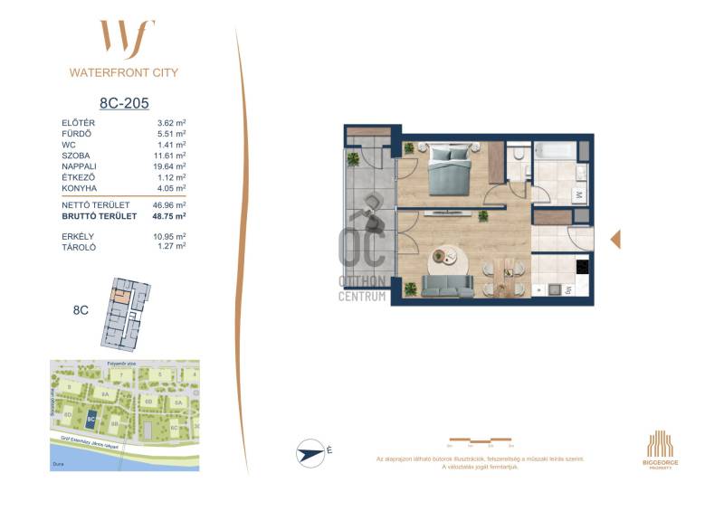 Projekt bemutatásaA projektrőlA Waterfront City egy új, modern városnegyed a 3. kerületben, ahol a természet közelsége és a városi kényelem tökéletes egyensúlyban van. A Duna-part közvetlen szomszédságában elhelyezkedő fejlesztés különleges atmoszférát kínál: a sétányt új épületek határolják, üzletekkel, kávézókkal és szolgáltatásokkal, amelyek élhető közösségi teret teremtenek.A 13 emeletes lakóépületből lenyűgöző örökpanoráma nyílik a budai hegyekre és a folyóra, a tágas teraszok pedig ideálisak a pihenéshez vagy a baráti összejövetelekhez. A zöldtetők, parkosított terek és fenntartható megoldások – mint az energiatakarékos rendszerek és okos otthon funkciók – mind hozzájárulnak a modern, környezettudatos életstílushoz.Látogass el értékesítési irodánkba, és tekintsd meg a városnegyed makettjét személyesen! Ismerd meg, milyen lesz az élet Budapest egyik legizgalmasabb új fejlesztésében!Óbuda szívébenKépzeld el, ahogy egy napsütéses délelőttön Óbuda szívében sétálsz, a Duna közelsége frissítően hat rád, miközben a Folyamőr utca, a Miklós tér és a Bogdáni út által határolt, öt hektáros területre érsz. A levegőben ott van a város történelme, mégis minden részletében a jövő hívogat.A 50 000 négyzetméteres területen egy hangulatos sétány vezet végig, amely egyenesen az óbudai Fő térre visz – mindössze 600 méterre. Ez a sétány nem csupán összeköt, hanem élményt nyújt: a Kolosy térről induló Óbudai Promenád részeként a város egyik legélhetőbb, legpezsgőbb szakaszán haladsz végig. És ha biciklivel érkeznél? A nemzetközi kerékpárút is itt halad el, Szentendre felé vezetve.Az 5. ütemben épülő 149 lakás mindegyike egyedi hangulatot kínál. Ahogy belépsz egy-egy otthonba, a hatalmas üvegfelületeken át beáradó fény és a tágas, szellős terek azonnal magukkal ragadnak. A kilátás? A Kaszap István park zöldje nyújt békét, míg a felsőbb emeletekről a Budai-hegység örökpanorámája tárul eléd – minden nap egy új festmény az ablakodban.A 6. ütemben 316 modern lakás épül, tágas teraszokkal és lenyűgöző kilátással a Dunára és a budai hegyekre. A lakók kényelmét őrszolgálat, kamerarendszer, mélygarázs, vendéglátóhelyek, belső park, játszótér és E-autó töltők szolgálják. Ez a projekt utolsó üteme, amely még közvetlen Duna-parti kapcsolattal rendelkezik. |