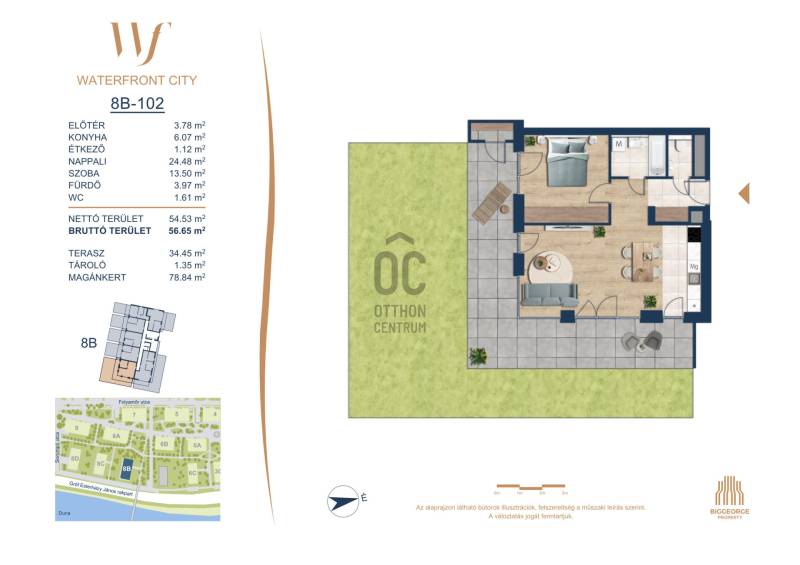 Projekt bemutatásaA projektrőlA Waterfront City egy új, modern városnegyed a 3. kerületben, ahol a természet közelsége és a városi kényelem tökéletes egyensúlyban van. A Duna-part közvetlen szomszédságában elhelyezkedő fejlesztés különleges atmoszférát kínál: a sétányt új épületek határolják, üzletekkel, kávézókkal és szolgáltatásokkal, amelyek élhető közösségi teret teremtenek.A 13 emeletes lakóépületből lenyűgöző örökpanoráma nyílik a budai hegyekre és a folyóra, a tágas teraszok pedig ideálisak a pihenéshez vagy a baráti összejövetelekhez. A zöldtetők, parkosított terek és fenntartható megoldások – mint az energiatakarékos rendszerek és okos otthon funkciók – mind hozzájárulnak a modern, környezettudatos életstílushoz.Látogass el értékesítési irodánkba, és tekintsd meg a városnegyed makettjét személyesen! Ismerd meg, milyen lesz az élet Budapest egyik legizgalmasabb új fejlesztésében!Óbuda szívébenKépzeld el, ahogy egy napsütéses délelőttön Óbuda szívében sétálsz, a Duna közelsége frissítően hat rád, miközben a Folyamőr utca, a Miklós tér és a Bogdáni út által határolt, öt hektáros területre érsz. A levegőben ott van a város történelme, mégis minden részletében a jövő hívogat.A 50 000 négyzetméteres területen egy hangulatos sétány vezet végig, amely egyenesen az óbudai Fő térre visz – mindössze 600 méterre. Ez a sétány nem csupán összeköt, hanem élményt nyújt: a Kolosy térről induló Óbudai Promenád részeként a város egyik legélhetőbb, legpezsgőbb szakaszán haladsz végig. És ha biciklivel érkeznél? A nemzetközi kerékpárút is itt halad el, Szentendre felé vezetve.Az 5. ütemben épülő 149 lakás mindegyike egyedi hangulatot kínál. Ahogy belépsz egy-egy otthonba, a hatalmas üvegfelületeken át beáradó fény és a tágas, szellős terek azonnal magukkal ragadnak. A kilátás? A Kaszap István park zöldje nyújt békét, míg a felsőbb emeletekről a Budai-hegység örökpanorámája tárul eléd – minden nap egy új festmény az ablakodban.A 6. ütemben 316 modern lakás épül, tágas teraszokkal és lenyűgöző kilátással a Dunára és a budai hegyekre. A lakók kényelmét őrszolgálat, kamerarendszer, mélygarázs, vendéglátóhelyek, belső park, játszótér és E-autó töltők szolgálják. Ez a projekt utolsó üteme, amely még közvetlen Duna-parti kapcsolattal rendelkezik. |