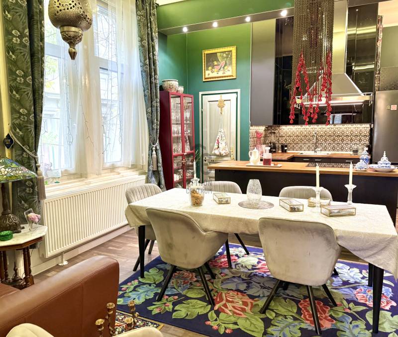 A város egyik legkarakteresebb, századfordulós palotájában kínáljuk megvételre ezt a kivételes hangulatú, több mint százéves építészeti részleteket megőrző, tágas terekkel rendelkező műtermi lakást. Az ingatlan igazi kuriózum: a felső szinten kapott helyet a ház eredeti műterme, amely óriási belmagasságával és monumentális ablakfelületeivel páratlan fényt és atmoszférát biztosít. A napfény gyönyörűen járja be a teret, így alkotói munkához és nagyvonalú nappaliként is tökéletes.LAKÁS ÖSSZEFOGLALÓ- 2. emelet, 195 m² nettó alapterület + 2 db utcai nézetű erkély - Belső kétszintes, a felső szinten található a 48 m²-es műterem monumentális ablakokkal és kiváló fényviszonyokkal- Az alsó szint alapterülete 116m², ezen a szinten található az amerikai konyhás nappali és további 3 szoba + 2 fürdőszoba+WC, továbbá kamra és egyéb helyiségek- Alsó szint belmagassága: 3,9m- Műterem belmagassága: 5,1m- A lakás 2018-ban gépészeti felújításon esett át, minden vezeték és a fűtésrendszer korszerűsítve lett- Közös költség: 53.625 HUF/hó - Fűtése: egyedi cirkó gázfűtés TÁRSASHÁZ- 1898-ban építették eklektikus stílusban, a lakás a villatulajdonos saját lakrésze volt- Eredetileg elegáns panziónak épült, egészen az 1930-as évekig fogadta a vendégeket- A tégla építésű társasház lift nélküli, 14 lakásos- A felújítási - és karbantartási munkálatok rendszeresek, a lakóközösség kultúráltAmennyiben további információra van szüksége, vagy megtekintené az ingatlant, várom hívását, kérem, keressen bizalommal! |
