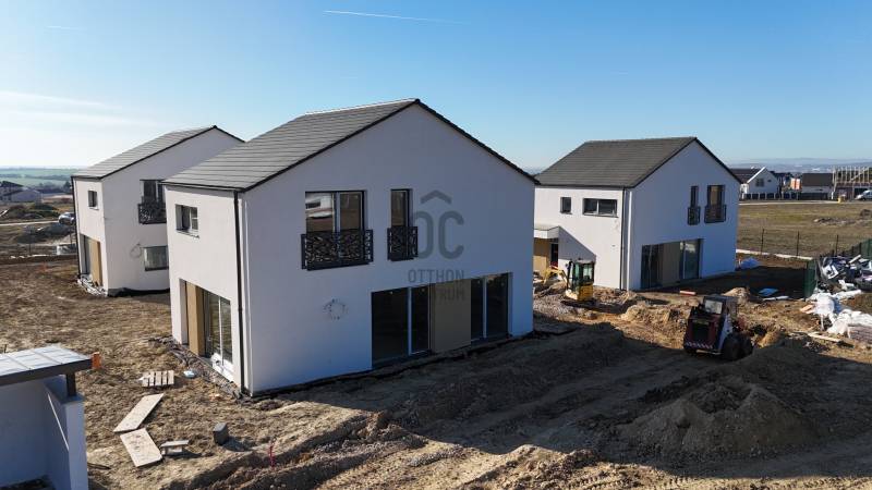 A budai agglomeráció egyik legkedveltebb településén Budajenőn természetközeli környezetben kínálunk megvásárlásra egy újépítésű családi házat 433 nm-es telekkel. A lakóépület kizárólag a földszinten érintkezik a szomszéddal, itt is a két garázs fala ér össze, az emeleten egyáltalán nincs közös fal. 4 házból álló mini lakópark kulturált, intelligens szomszédokkal, már csak ez az egy ingatlan eladó. A belső elosztás tágas, a mai modern igényeknek maximálisan megfelelő, hatalmas üvegfelületek minden helyiségben. Korszerű technológia, magas műszaki tartalom: megújuló energia, hőszivattyús fűtés (Bosch, padlófűtés, mobil appról vezérelhető), mennyezethűtés, napelem előkészítés solar átvezető cseréppel, H tarifa, kamera, riasztó, klíma előkészítés, elektromos autó töltő előkészítés, 20 cm grafitos homlokzati szigetelés, 3 rétegű üvegezésű ablakok, redőny előkészítve, extra tetőszigetelés, fűtött garázs, térkövezett autóbeálló. A ház belső kétszintes, a földszinten a tágas, kertkapcsolatos nagy konyha-étkező-nappali a lakás központja, ezen a szinten kapott helyet egy háló vagy dolgozószoba, egy mosdó, nagy előszoba és a garázs, ahol tárolásra is marad hely. Az emeletre kényelmes lépcső vezet, ahol 3 nagy méretű hálószoba, két fürdőszoba és egy zöld tetőterasz került kialakításra. Burkolatok, szaniterek, belső ajtók megadott kereteken belül választhatók, a vételár részét képezik. Befejezés, birtokbaadás 2-3 hónapon belül. Használatbavételi engedély megvan, az ingatlan tehermentes, hitelezhető. A településen sok a gyermekes, fiatal család, a helyi óvoda kifejezetten jó. Igényes, szép kivitelezés. |