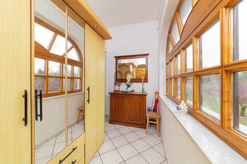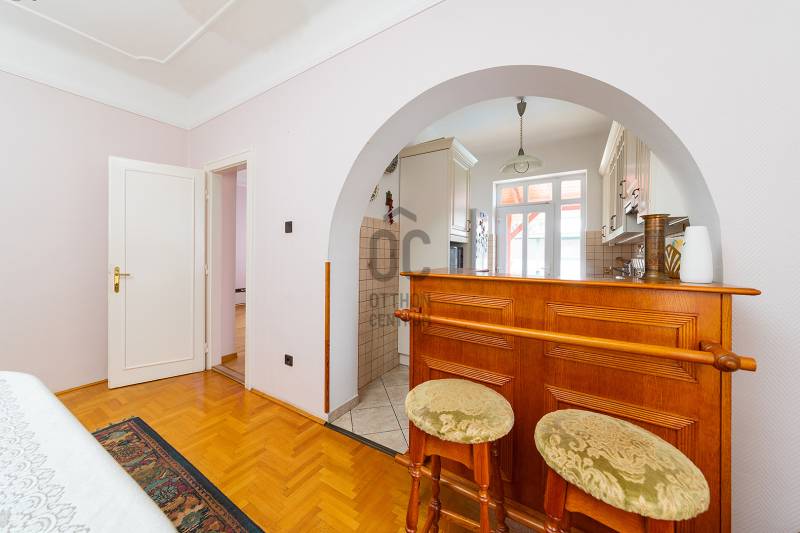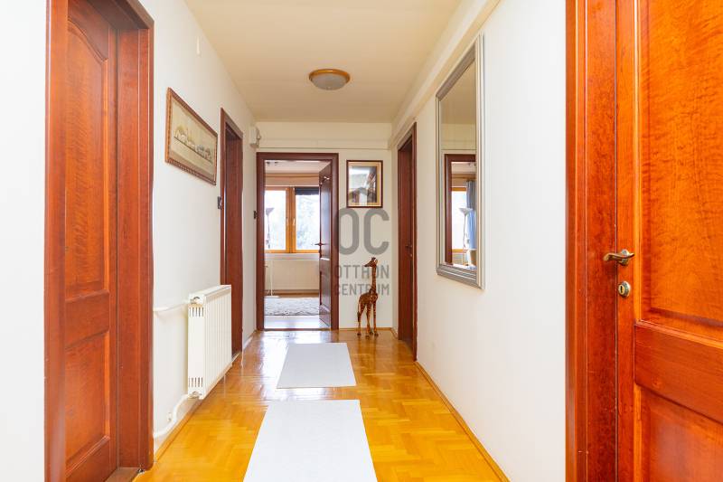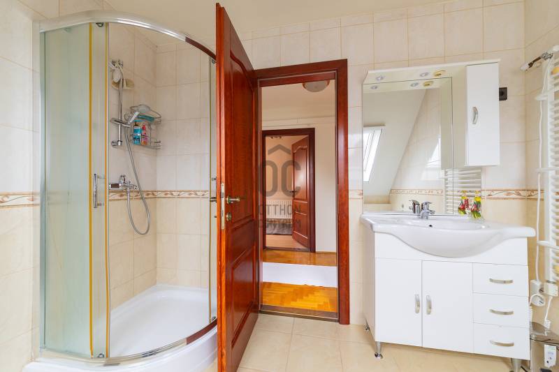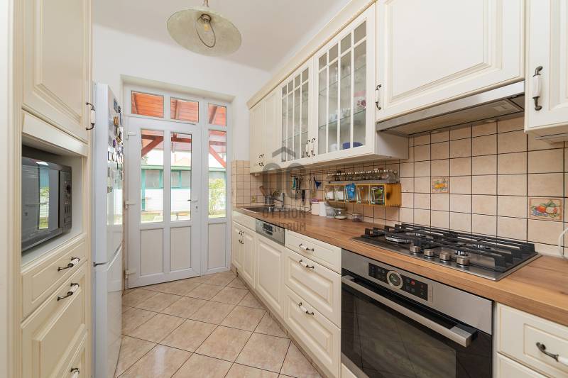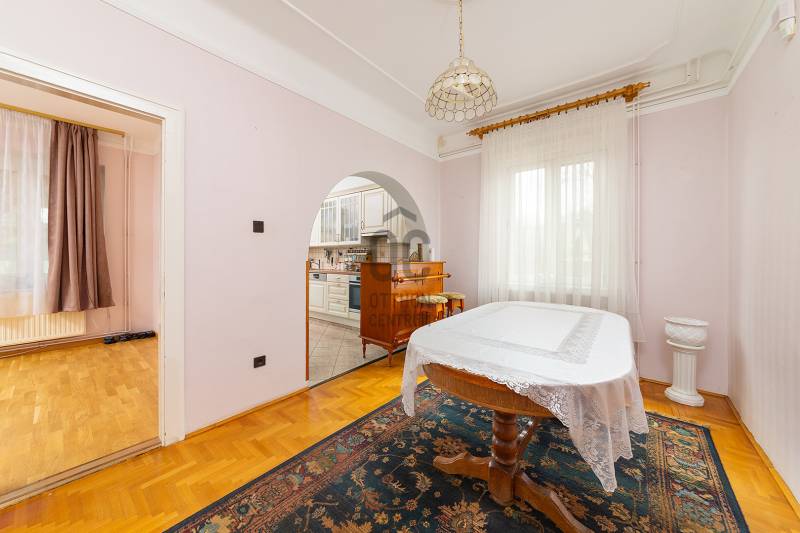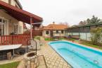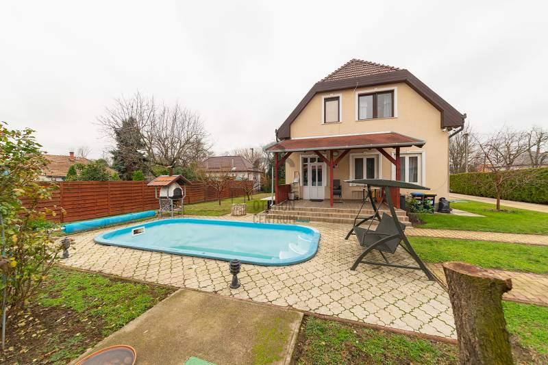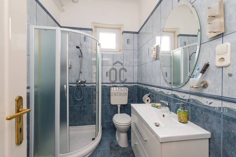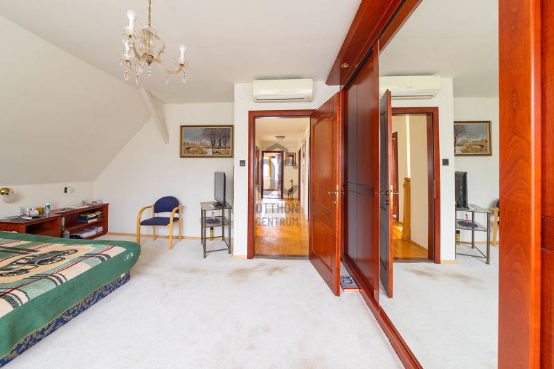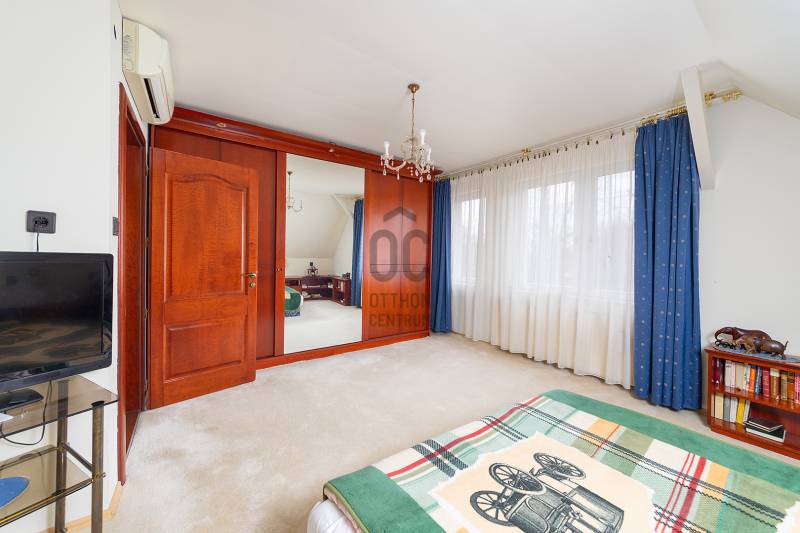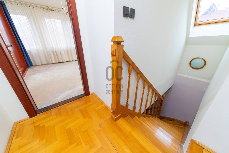 XVII. kerületben Felső-Rákoshegyen, a kerület \"villanegyedében\", ősfás, parkos környezetben kínálunk megvásárlásra egy remek családi házat. A telek mérete 973 nm, gépesített, fűtött medence, nagy garázs, a kert végében műhely, térkövezett autóbeálló, kerti sütögető szolgálják a lakók kényelmét. A ház a 90-es évek végén nyerte el mai formáját, de azóta is több felújítás, korszerűsítés történt. Belső elosztása kiváló, nagyobb család számára is kényelmes otthon lesz. A földszinten tágas, déli tájolású nappali, nagy méretű hálószoba, nagy étkező, konyha teraszkapcsolattal, kamra, zuhanyzós fürdőszoba, előszoba került kialakításra. A konyhában a beépített Nobilia konyhabútor és konyhagépek a vételár részét képezik, a bútorzat pár éve lett cserélve, minőségi darab. Az emeletre kényelmes lépcső vezet, ahol 4 szoba található, továbbá egy kádas fürdőszoba és egy külön mellékhelyiség is helyet kapott. A tetőtér pár éve újra lett szigetelve egy korszerű technológiával. A fűtést és a használati melegvizet egy 2022-ben beszerelt kondenzációs kazán biztosítja, de rendelkezésre áll egy fatüzelésű kazán is, nyáron a kellemes hőmérsékletről 6 db klíma gondoskodik. Az ablakok hőszigetelt üvegezésű fa és műanyag nyílászárók. A tetőt cserép fedi. A kert végében egy kb. 100 nm-es műhely is található, mely könnyedén elbontható, ha nincs szükség rá. A környék kifejezetten szép, csendes, kulturált szomszédokkal. A tömegközlekedés kiváló: buszmegálló 5 perc séta (198-as), vonat állomás 800 méter (11 perc gyalog). Iskola, gimnázium, orvosi rendelő, posta, piac is rövid időn belül elérhető. Az ingatlan üres, tehermentes, gyorsan belül birtokba vehető. |