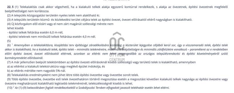 Eladó telek Martonvásáron, a város szívében!Ez a 1124 négyzetméteres telek ideális választás egy családi ház vagy egy ikerház építéséhez. A telek délkeleti tájolású, így a napfény egész nap kellemesen megvilágítja az ingatlant.A közművek könnyen elérhetők: a víz, a gáz és a csatorna az utcán, míg az elektromos hálózat már a telken belül megtalálható.TELEK INFORMÁCIÓK: - Beépíthetőség: 30%- Beépítés módja: Szabadon álló beépítés - Legnagyobb megengedett épület magasság: 6,5m - Minimális zöldfelületi aránya: 50% A telek mellett a Szent László patak csordogál, ami igazán különleges és nyugodt kertvárosi hangulatot kölcsönöz a környéknek.Ne hagyja ki ezt a remek lehetőséget, és hozzon létre egy álomotthont Martonvásáron!Várom kedves megkeresését. |