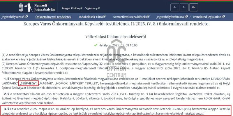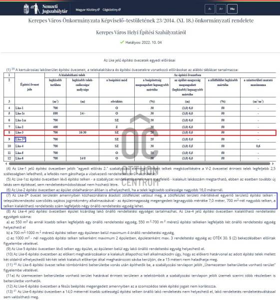 HA ESETLEG CSAK EGY HOSSZABB TÁVÚ BEFEKTETÉSBEN GONDOLKODNA VAGY HA MÉG - EGYELŐRE - TUDNA VÁRNI EGY KICSIT AZ ÉPÍTKEZÉSSEL, DE ENNEK ELLENÉRE MÁR MOST EGY KIVÁLÓ HELYEN LÉVŐ ÉS KIVÁLÓ ADOTTSÁGOKKAL RENDELKEZŐ, BELTERÜLETI, LAKÓÖVEZETI, ÉPÍTÉSI (SAROK)TELKET KERES, AKKOR EZEN AJÁNLATOM ÖNNEK LETT CÍMEZVE……A pesti agglomerációban található Kerepes településnek a Szilasligeti oldalán, csendes / nyugodt zöldövezeti környezetben lévő és kellemes panorámával büszkélkedő Széphegy domb tetején kínálom eladásra ezt a belterület, lakóövezeti, a helyi építési szabályzat előírása szerint „Lke-3”-as besorolású, 637 m2-es alapterületű, közműhálózatokkal (villany, víz és csatorna) is már előkészített, építési saroktelket. A telek kiváló adottságainak köszönhetően ideális választás lehet hosszú távú befektetésnek, illetve a jövőben önálló családi ház vagy 2 lakóegységes ikerház építésére is. A magas fekvésének köszönhetően természetes vízelvezetéssel rendelkezik, ami nemcsak műszaki szempontból előnyös, hanem hosszú távon is biztonságos alapot nyújt az építkezéshez.A közműellátottság rendezett és problémamentes: a telken belül csatorna kiállás és villanyóra doboz található, vezetékes víz az utcában (telek előtt) van, aminek a leágaztatása már kifizetésre került. A környéken a víz-, csatorna- és villanyellátás biztosított, ami ezen a városrészen kiemelkedő előny. A gázszolgáltatás előreláthatóan a későbbiekben sem valószínű, hogy kiépítésre fog kerülni.Kerepes helyi építési szabályzata szerint a telekre vonatkozó kötelező előírások és a telek paraméterei:Építési övezet besorolása: Lke-3 (kertvárosias lakóterület)Beépítési módja: Szabadon álló álló beépítési módPozíciója: saroktelekMérete: 637 m2Utcafronti hossza (szélessége): 19 m / mélysége (hosszúsága) 33,5 mLejtése: enyhén lejtős (0-5%)Legnagyobb beépíthetősége terepszint felett: 25%Legkisebb zöldfelületi lefedettségi aránya: 50%Épület létesítésére vonatkozó kötelező előírások:Építmény jellege: (önálló) családi ház vagy (2 lakóegységes) ikerházÉpítménymagasság (legkisebb / legnagyobb): 3,0 méter / 5,0 méterEzen terület (maga az egész Széphegy) egy önkormányzati döntésnek köszönhetően 2025. május 8-tól maximum 3 évig (2028. május 8-ig) vagy visszavonásig, változtatási (építési) tilalom alatt áll(!), ezért a telek jelen pillanatban inkább befektetési célra ajánlott - mivel az elhelyezkedése és mérete miatt kivételes értéknövekedési potenciállal is rendelkezik – ugyanakkor opcionálisan pedig egy későbbi megvalósításra váró építkezés kiváló alapjául szolgálhat majd!A telek elhelyezkedése több mint kiváló: a Kerepes HÉV állomás gyalogosan kb. 12 percre található, az Auchan Csömör és a Next Stop bevásárlóközpont is mindösszesen csak 1,5 km-re és az M0-ás (körgyűrű) autópálya pedig 2 km-re érhető el. A jó (tömeg)közlekedésnek is köszönhetően Budapest nagyon gyorsan - pár perc alatt - és nagyon kényelmesen elérhető!A Széphegy városrész csendes, nyugodt, családias, zöldövezeti jellege garantálja a természet közelségét és a kellemes lakókörnyezetet. A telek mérete kényelmes lehetőséget ad egy tágas (nagy lakóterületű) önálló családi ház vagy egy 2 lakásos ikerház megépítésének a hozzátartozó kellemes méretű kert kialakításának a lehetőségével, ami a jövőben csak tovább növelheti az ingatlan(ok) értékét. Ez a telek nem csupán egy ingatlan, hanem egy tudatos döntés azok számára, akik értékálló befektetést keresnek egy folyamatosan fejlődő környéken. A telek 1/1-es magántulajdonban van és teljesen tehermentes.Szerintem éljen a lehetőséggel, jöjjön el és nézze meg személyesen, győződjön meg mindenről a saját szemével, kérdezzen bátran, beszélgessünk róla, tudjon meg mindent és szeressen bele !!! ;)Ha a leírtak alapján felkeltettem az érdeklődését, megelőlegezett bizalmát előre is megköszönve, akár a hétvégén is várom szíves jelentkezését! |