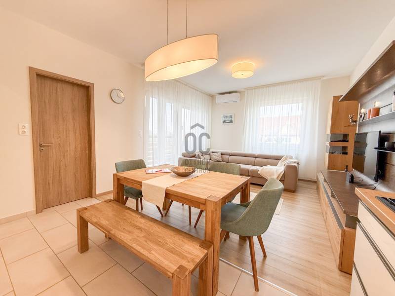 Prémium minőségű, teljesen berendezett, alig lakott lakás eladó Hegykőn !Hegykő kedvelt, nyugodt részén, Soprontól mindössze 17 km-re, 2020-ban épült, modern társasházban kínálunk megvételre egy rendkívül igényesen kialakított, azonnal költözhető lakást. Főbb paraméterek:Alapterület: 71 m²Emelet: 1. emeletElrendezés: amerikai konyhás nappali , 2 hálószoba, 2 erkély, külön WC, kamraFűtés: házközponti fűtés ( Hibrid hőszivattyú, gáz ) , padlófűtéssel, radiátorokkalHűtés: klímaberendezésParkolás: saját gépkocsi-beálló ( +2,9 M Ft )Állapot: újszerű, prémium kivitelezés, minőségi anyagokkal, berendezéssel.✨ Amitől igazán különleges:- Teljes berendezéssel és bútorzattal eladó – csak költözni kell ( tényleg teljes berendezéssel, beleértve mosó és szárítógépet bútorokat, MINDENT! )- Igényes konyhabútor Bosch konyhagépekkel ( sütő, mikró, kerámia főzőlap, elszívó , mosogató, hűtő ) - Modern, letisztult belső design- Minőségi bútorok, burkolatok és egyedi megoldások- Világos, jól élhető terek- Műanyag külső nyílászárók, 3 rétegű üvegezéssel,- Motoros, alumínium redőnyök- Kiváló energiahatékonyság, alacsony fenntartási költségek- A lakást alig lakták, csak időszakos tartózkodásra használták. ElhelyezkedésHegykő kiváló infrastruktúrával rendelkező, folyamatosan fejlődő település, termálfürdőjéről és nyugodt környezetéről ismert. Ideális választás állandó lakhatásra, nyaralónak vagy befektetésnek is egyaránt hiszen a jelenlegi tulaj vissza is bérelné.ÖsszegzésEz a lakás tökéletes választás azok számára, akik modern, igényes otthont keresnek kompromisszumok nélkül, és fontos számukra a jó környezet és akár az azonnali költözés lehetősége.Hitelre van szüksége??Az Otthon Centrum az ország egyik legnagyobb és legmegbízhatóbb hitelközvetítőjeként, teljes körű és díjmentes hitelügyintézéssel, biztosításkötéssel áll rendelkezésére!Kérje személyre szabott ajánlatunkat Kollégáinktól! |