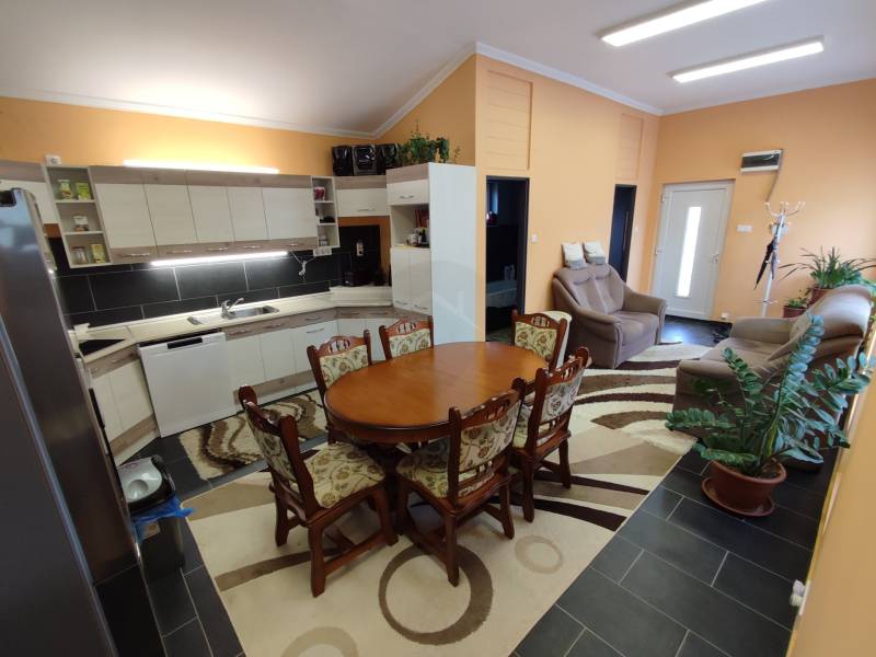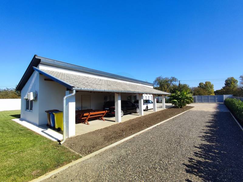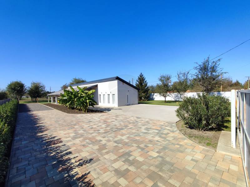 EXKLUZÍV BIRTOK JELLEGŰ CSALÁDI REZIDENCIA BÉKÉSCSABÁN- nyugalom, tér és elegancia az Almáskertek ölelésében!Békéscsaba egyik legkedveltebb, csendes és rendezett városrészében, az Almáskertek övezetében kínálunk megvételre egy igazán különleges, újszerű családi otthont, amely nemcsak lakóingatlan, de életstílus is egyben.Főbb jellemzők:Telek mérete: 3542 m²Lakótér jelenleg: 160 m²Potenciális beépíthetőség: akár 270 m²Szobák száma: 3 + bővíthetőTerasz: 60 m² – akár beépíthetőParkolás: udvari beálló, illetve két autós garázs előkészített alapokkalElhelyezkedés: Szekér sor, 150 m-re a főúttólEz az egyszintes, déli tájolású, napfényben fürdő modern otthon tökéletes választás lehet mindazoknak, akik a természet közelségét és a városi infrastruktúrát egyszerre szeretnék élvezni.Letisztult design – Minőség minden részletbenA ház építése során kizárólag magas minőségű, tartós anyagokat használtak, az alapoktól a tetőig. A statikailag többszörösen megerősített szerkezet hosszú távú biztonságot garantál.Az amerikai konyhás, 30 m²-es nappali-étkező letisztult vonalvezetése és tágas kialakítása valóban otthonossá varázsolja az életteret. Az ingatlan emellett rendelkezik egy modern fürdőszobával (okosbojler, kád), különálló WC-vel, két külön nyíló hálószobával és egy 14 m²-es tárolóval is.A 60 m²-es, jelenleg fedett terasz családi, baráti összejövetelek ideális helyszíne – akár be is építhető, a hivatalos besorolás már lehetővé teszi ezt engedély nélkül, így újabb szobákkal, nappalival, vagy akár műhellyel is bővíthető a ház.Energiahatékony, fenntartható működésA lakóingatlan kiváló energetikai jellemzőkkel bír:H-tarifás hűtő-fűtő klímák25 cm-es Rockwool tetőszigetelésAlacsony rezsiköltség – a teljes téli fűtési szezon alatt is 150.000 Ft alatt tarthatóEmellett háromfázisú áramellátás, telefon, internet, kábel TV kiépítve. A napelemrendszer előkészítve, visszatápláló mérőóra és földkábeles kiépítés biztosított.Természet, tér és lehetőségek – egy birtok minden adottságávalA hatalmas telek igazi ritkaságnak számít:Több mint 1000 m² gyepszőnyeg20 árnyékot adó fa, örökzöldek2000 m² jelenleg művelt kert (önellátásra vagy vállalkozásra)63 m²-es melléképület (tárolásra, műhelynek, irodának)Az öntözésről nagy teljesítményű fúrt kút (8000 liter/óra) és szivattyú gondoskodik. A teherbíró térkövezett bejáró akár nagyobb járművek, ipari gépek fogadására is alkalmas (40 tonna+ teherbírás). Ide már elő van készítve a kétállásos garázs betonalapja is.Bármit megálmodhat – itt meg is valósíthatjaEz az ingatlan nemcsak otthonként, hanem vállalkozás, befektetés vagy gazdálkodás céljára is kiválóan alkalmas. A csendes, falu hangulatú környezet tökéletesen alkalmas akár:falusi turizmusra,állattartásra,gyümölcsös vagy erdő telepítésére,vagy akár egy privát golfpálya kialakítására is.Kiváló elhelyezkedés, kitűnő megközelíthetőségBár a ház idilli, természetközeli környezetben helyezkedik el, a városközpont mindössze 5 perc autóval, gyorsabban elérhető, mint sok új lakóövezetből.Buszmegálló: 400 mBevásárlóközpont: 3 percBelváros: 5 percTovábbi előnyök:Teljesen körbekerített, új kerítésPrémium riasztórendszerKözművek bevezetveTehermentes tulajdonBővítési lehetőség tervek nélkülCSOK Plusz kompatibilisEz az ingatlan többet kínál, mint egy otthon: ez egy lehetőség.Ha Ön olyan helyet keres, ahol a családi nyugalom, az üzleti lehetőségek és a természetközeliség harmonikusan egyesülnek, akkor ne hagyja ki ezt a páratlan ajánlatot.Vegye fel velünk a kapcsolatot, szívesen bemutatjuk ezt a valóban egyedi ingatlant! |