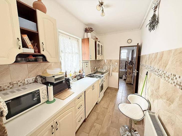 A XVI. kerület kedvelt részén, Sashalmon, családi házas övezetben kínálunk megvételre egy 57 nm-es, 2 szobás, gardróbos tégla lakást, amelyhez kertkapcsolat kialakításának lehetősége tartozik.A kert jelenleg még nem megközelíthető közvetlenül a lakásból, azonban az egyik szobában teraszajtó beépítésével közvetlen kijárat alakítható ki a kert irányába.Az ingatlanrólAz 1960-ban épült, szigetelt, fafödémes, cserépfedésű ház nyugodt, családi házas környezetben található. A lakás világos, jó elosztású, minden helyisége praktikusan használható.A fűtést és a meleg vizet kondenzációs kazán biztosítja, a nyílászárók korszerű, műanyag, hangszigetelt kivitelűek. A burkolatok jó állapotú járólapok, a vizes helyiségek rendezettek. Az ingatlan 2020-ban teljes körű műszaki felújításon esett át, melynek során megtörtént a víz- és villanyvezetékek cseréje, valamint a kazán cseréje is.Bővítési lehetőségek:A tetőszerkezet kiváló alapot nyújt további lakótér kialakítására – akár szobák beépítésére, akár többgenerációs otthon létrehozására.A kert jelenleg közös használatú, a telekmegosztási szerződés elkészülte után pedig lehetőség nyílik annak egy részét saját használatú kertként leválasztani.Elrendezés• előszoba• étkező• konyha• 2 szoba• gardrób• fürdőszoba mellékhelyiséggel ParkolásA telken belül megoldható.KözlekedésPár perc sétára elérhető több buszjárat és a H8–H9 HÉV(44, 45, 92, 92A, 176E, 276E, 908).FinanszírozásAz ingatlan támogatott hitelre is megvásárolható, díjmentes bankfüggetlen tanácsadással. Irányár: 71,9 millió FtVevőink részére a közvetítés díjtalan A hirdetésben szereplő adatok tájékoztató jellegűek. |