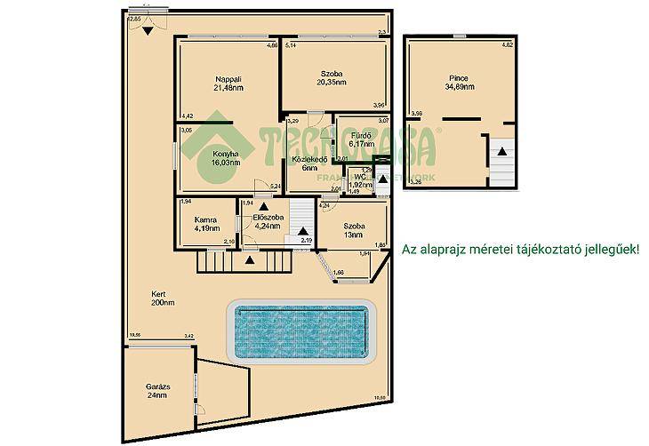 IV. kerületben, Újpest-kertváros részen, 347nm-es telken, Nettó: 94nm-es, előkertes, három fekvésű (É/D/Ny), duplakomfortos, 3 szobás, földszinti lakás eladó, 35nm-es pincével, saját 200nm-es medencés kerttel, autóbeállóval, garázzsal.Az ingatlan felújított állapotú. A felújítás és átépítés 2012-ben zajlott. A ház külső szigetelést kapott, a villanyvezetéketek áthúzták, a vízvezetékeket és a gázcsöveket korszerűsítették. Kondenzációs cirkó és 3 inverteres klíma került beszerelésre. A nappaliban hőszigetelő aljzatbeton, éjszakai áramról működtetett falfűtés és tömegkályha is gondoskodik a kellemes hőmérsékletről. Az ablakok és az ajtók thermo üveges műanyagok, redőnnyel és szúnyoghálóval. A konyha, a fürdőszoba és a WC felszereléseit, fali, illetve padlóburkolatait, a többi helyiség padlózatát és a belső ajtókat kicserélték. A szobák laminált padlósak, a többi helyiség járólapos.A beépített elemek a vételár részét képezik, a többi bútor megegyezés szerint maradhat.A kertben található egy 18nm-es medence és egy elektromos ajtóval felszerelt 24nm-es garázs. Az autóval történő behajtást elektromos kertkapu segíti.Az ingatlan egy helyrajzi számon van az emeleti lakással, így ügyvédi megosztással történne az adás-vétel.A közelben van lehetőség bevásárlásra, elérhető gyermek- és felnőtt orvosi rendelő, iskolák, óvodák.A lakás elhelyezkedése kiváló. Ingyenes parkolóhelyek szolgálják az itt lakók kényelmét, de a BKK járataival is könnyen megközelíthető, a kikapcsolódni vágyókat pedig a Farkas-erdő várja.A 96/121/270/296/296A buszok megállója 5 perc, a 20E/220/914 buszok és a 14-es villamos megállója 8 perc, Újpest-központ metróállomás pedig 15 perc alatt elérhető.Finanszírozás: az ingatlan tehermentes, banki finanszírozással is megvásárolható (CSOK+, babaváró), melyben független hiteltanácsadó kollégánk ingyenes tanácsadással áll rendelkezésükre!Egyes ingatlanjaink esetében csere és ingatlanbeszámítás is lehetséges. Továbbá ügyfeleink részére keresünk eladó ingatlant, tulajdonrészt, vagy haszonélvezeti joggal terhelt ingatlant Budapesten és az agglomerációban.VEVŐINK RÉSZÉRE A KÖZVETÍTÉS DÍJTALAN ELADÓINKNAK INGYENES ÉRTÉKBECSLÉST BIZTOSÍTUNK!A hirdetésben szereplő adatok tájékoztató jellegűek! |