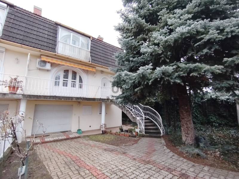 Budafokon, az Arany János utcában vált elérhetővé ez a 96-ban , a tulajdonos tervei és kivitelezése alapján épült, ikerház.Különlegessége, hogy minden hálószobához beépített erkély tartozik, és az ebédlőhöz, nappalihoz, földszinti lakáshoz pedig nagy terasz.Elhelyezkedését tekintve kiváló, kertes lakóövezetben, buszmegálló a szomszédban, amivel a belváros pár megállónyira,a másik irányban, Kőbánya vasút és buszpályaudvar 20 perc tömegközlekedéssel érhető el. Az Egér úti lehajtó pár percre található autóval, mégis teljesen nyugodt, csendes részen lehet az otthonunk.Az ingatlanról: - udvara kerítéssel teljesen leválasztott, 455 nm, hátsó részén gyümölcsfákkal, egy nagyobb tároló faházzal, előkertje nagy részt díszkővel rakott, gyönyörű fenyő ad védelmet nyáron a tűző nappal szemben.- utcafronti részről lehet behajtani autóval a garázsba, amihez billenő kapurendszer lett szerelve, de az udvaron is parkolhatunk - a garázsszinten van még egy raktár, mosókonyha és a hátsó részen egy különálló garzon lakás szoba, konyha, fürdőszobával, ami a lépcsőházból és külön bejárattal is megközelíthető, természetesen, ehhez is tartozik terasz- a félemeleten van a közel 25 nm-es, déli fekvésű nappali, nagy étkező, konyha, zuhanyzós fürdő- az emeleten 3 teljesértékű hálószoba, nagy belmagassággal, csapott terek nincsenek, a tetőszerkezet jól átgondolt kialakításának köszönhetően. A hálók mindegyikéhez fedett erkély tartozik. Itt is kialakítottak fürdőszobát- fűtése újszerű turbós gázcirkóval történik , nappaliban hűtő-fűtő klíma is vanÖsszességében, ha elég a 4 szoba, akár pénzkereseti lehetőségben is lehet gondolkozni a leválasztott garzon kiadásával, vagy használható kamasz gyermek életkezdéséhez, generációk összeköltözésére is.A ritkaságnak számító 4 fürdő is hozzájárulhat ezekhez a megoldásokhoz.Amennyiben felkeltettem az érdeklődését, hívjon, akár hétvégén is, biztosan felveszem, vagy visszahívom!#5szobanegyfurdo# |