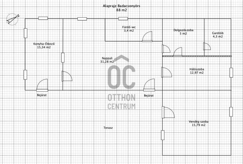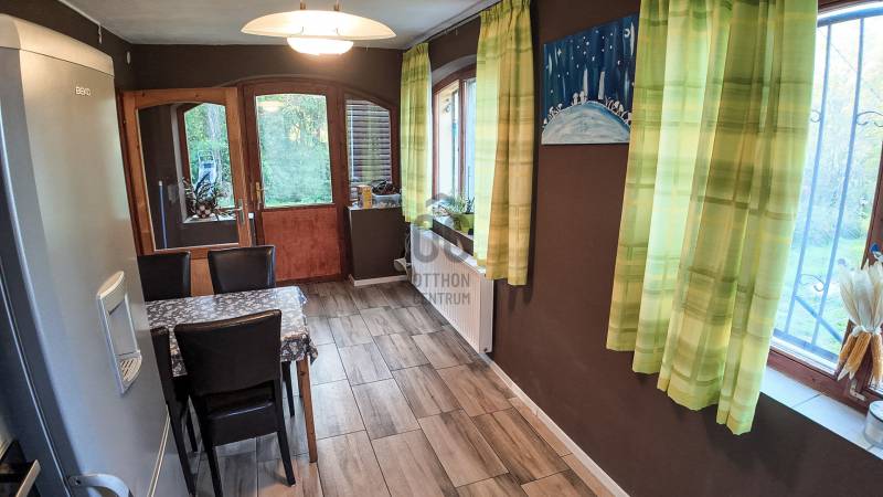 KIEMELT MEGBÍZÁS CSAK AZ OTTHON CENTRUM KÍNÁLATÁBAN!Badacsonyörs csendes, átmenő forgalomtól mentes utcájában kínálok megvételre, természetközeli helyen egy 88 m2 lakóterületű nyaralót.Tökéletes választás családi nyaralónak, állandó lakhatásra, a Balaton pár perc sétával elérhető.Az 88 m2-es tégla falazatú földszintes házban, egy tágas nappali, fürdő-wc, konyha-étkező, hálószoba, dolgozószoba és gardrób került kialakításra.Külön bejárattal a teraszról, elérhető egy vendégszoba is.Az otthon melegéről pelletkazán gondoskodik, radiátoros fűtéssel.A meleg vizet villanybojler állítja elő.Az 2294 m2 -es telken egy kb. 30 m2-es garázs is helyet kapott, melynek bitumenes teteje teraszként funkcionál.Az ingatlan minden részéről panoráma van a Badacsonyra és a Gulácsra.Víz és villany be van kötve az ingatlanban, a szennyvíznek emésztő lett kiépítve.A telken kis kert, és többféle gyümölcsfa is megtalálható.A ház könnyen megközelíthető aszfaltos, murvás úton.Tulajdoni lap szerint külterület, besorolása gyümölcsös. Kifüggesztés köteles.Badacsonyörs a 71-es főút mentén, a Balaton északi partjának nyugati részén, a Badacsony - hegy szomszédságában, Badacsonytomaj város mellett található.A nyaralótól pár perc autóútra megtalálható éttermek, iskola, óvoda, strand, gyógyszertár.A települést nem csak a főúton, de vasúton is kiválóan meg lehet közelíteni.Amennyiben felkeltettem érdeklődését vagy kérdése van, forduljon hozzám bizalommal! |