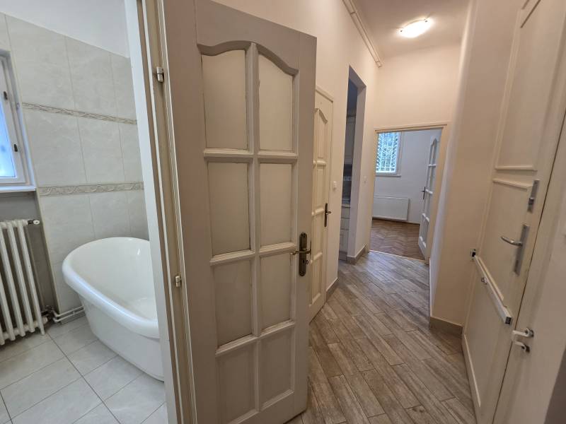 A II. kerületben Pasarét csendes mellékutcájában kiadó ez a 49 m2-es 2 szobás szépen felújított lakás.Bútorozatlan, és részben gépesített, gáztűzhely hűtőszekrény, invertes légkondicionáló berendezés van a lakásban, mosógép nincs.Az ingatlan négyszintes, 7 lakásos téglaépítésű ház magasföldszintjén található, DNY-i tájolású, kertre néző.2 szoba, konyha, fürdőszoba, külön wc kézmosóvalés erkély található a lakásban.A fürdőszobában design kád van, a konyha praktikusan felszerelt, a nappali tágas, világos, a hálószoba csendes kertre néz. Minden ablakon rdőny van.Tartozik a lakáshoz egy belső kocsibeálló is.Közös költség 12.375 Ft, a fűtés egyénileg mérhető, cirkóval és invertes légkondicionálóval is lehet fűteni, a lakás vízórás.A lakás azonnal költözhető, a bérléshez kéthavi kaució és a tárgyhavi bérleti díj szükséges.A közlekedés és a környék ellátottsága kiváló, az 5-ös busz megállója néhány perc sétára van. |