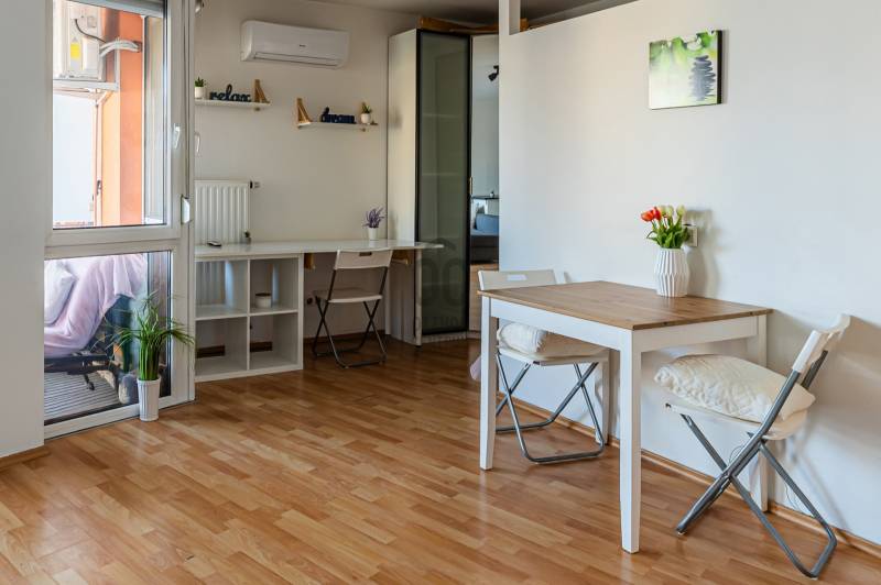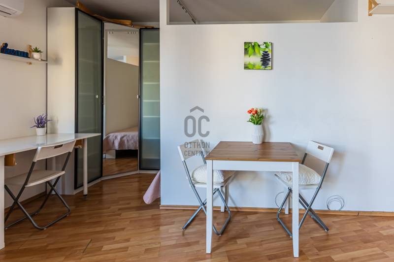 Ferencváros legkedveltebb részén, a Mester utcában eladó egy nappali+ hálófülkés, bruttó 36 m2-es, világos, erkélyes lakás.Ideális választás egyedülállóknak, pároknak!A lakás keleti fekvésű, így reggelente a napsütötte erkélyről élvezhetjük reggeli kávénkat, teánkat, miközben egy karnyújtásnyira vagyunk mindentől! Ebben a paraktikus kis lakásban mindennek jutott hely. Amerikai konyhás nappali, külön leválasztott hálófülke, dolgozó sarok, hatalamas gardrób szekrények, kádas fürdőszoba. Jól átgondolt tervezés, maximálisan kihasznált terek jellemzik ezt a fiatalos otthont! A konyha gépesített, még egy kis mogatógép is helyet kapott.A lakás belső udvarra néz, rendkívül csendes.A közösköltség 17 ezer forint, a rezsi pedig rendkívül alacsony. Egy havi teljes rezsi (fűtés, víz, villany) 10 ezer forint alatt szokott lenni. A lakás egy 2006-ban épült, modern, újszerű, duplaliftes társasház 4. emeletén található. A házban 24 órás recepció/portaszolgálat működik. A ház saját mélygarázzsal rendelkezik, melyben bérelhető és megvásárolható beállók is rendelkezére állnak. A közös terekben zárt kerékpártárolásra is van lehetőség.A társasház saját belső kerttel rendelkezik, melyben hangulatos kiülők, gondozott növényzet várja a pihenni, kikapcsolódni váró lakókat. Kiváló lokáció! Bevásárlási lehetőségek, kávézók, éttermek, pékség, gyógyszertár, oktatási intézmények, szabadidős lehetőségek a közvetlen közelben!Mind saját részre, mind befektetésnek kiváló választás ez az ingatlan!Jöjjön és nézze meg még ma! |