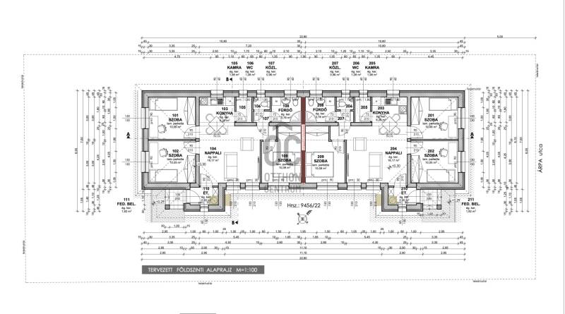 Eladó Cegléden, a Bedében egy most épülő 66.5 nm-es ikerház fél. A környező telkeken már több igényes, új építésű ikerház elkészült, így a környék rendezett utcaképpel rendelkezik.Az ingatlan műszaki paraméterei:- Tartó szerkezet:Az épület alapozása sávalapozással történik, 37.5 cm vastag via blokk falazat- Válaszfalak :10 cm vastag válaszfal téglából készülnek- Födém szerkezet :Az épületen fa gerendás födém készül fenyő gerendákkal- Tetőszerkezet :Fából készül, hagyományos ács és csavaros kötésekkel, fogópárokkal- Nyílászáró szerkezetek : műanyag- Burkolatok :Meleg padlós helyiségnél laminált parketta, hidegpadlós helyiségeknél kerámia burkolat- Térburkolat: Viacolor térburkolat készül- Fűtés: Kondenzációs gázkazán padlófűtéssel- 1 db inverteres klíma- Külön bejárat a 2 lakáshoz és teljesen különálló kert!!!- Parkoló: A telken belül két gépkocsi parkolása megoldott- Társasházi albetét kialakításElosztása: nappali, konyha + 3 hálószobaBővebb információkért keressen bizalommal!Ne hagyja ki ezt a remek lehetőséget!A hirdetésben szereplő információk a megbízótól származnak, pontosságukért felelősséget nem vállalunk. |
