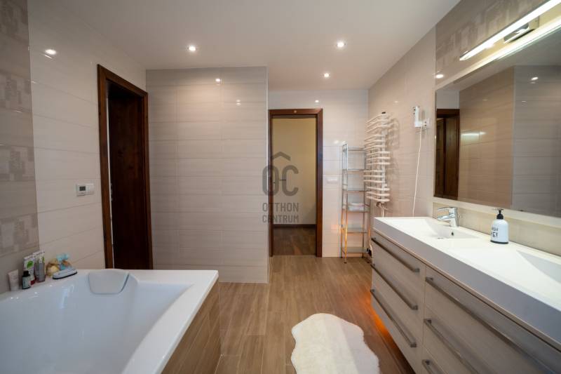 Ha egy igazán otthonos és prémium kivitelezésű ingatlant keres, ne menjen tovább, nézze meg ezt a modern, kényelmes otthont! Barátságos, kertvárosi hangulat, zöld környezet, biztonságos utcák, jó szomszédok jellemzik. További információk az ingatlanról:- alapterület: netto 208nm- telek méret: 390nm- zártsorú beépítés- vasbeton sávalap, szilikát falazat, tégla válaszfalak- vasbeton födém, szigetelt tető, zsindely fedés- szigetelt, színezett homlokzat- tágas, világos nappali étkezővel- 4 külön nyíló szoba (háló-, dolgozó-, vendégszoba)- szintenként elegáns, tágas fürdőszoba- festett falak- ízléses burkolatok- modern LED hangulatvilágítás- beépített, gépesített konyha- műanyag, hőszigetelt ablakok redőnnyel felszerelve- fa beltéri ajtók- modern, Hörmann bejárati ajtó- komoly gépészet, több fűtési alternatíva (kondenzációs gázkazán+vízteres kandalló+elektromos padlófűtés)- kiépített riasztó rendszer- egy állású, fűtött garázs- tároló+kazánház+kerti tároló az alsó szinten- hangulatos, fedett terasz (közvetlen kilépés a nappaliból)- gondozott, ápolt kertFelsorolni is nehéz, mit tud még ez az ingatlan?!A ház kiváló helyen található, a környék felkapott, közel a belváros, autóval is egyszerű megközelíteni. Ha biztonságos helyen színvonalas, elegáns ingatlant keresnek Tiszaújvárosban, jöjjön el, nézze meg ezt a családi otthont, garantáltan beleszeret!bank semleges hitelügyintézés, biztonságos jogi háttér, energetikai tanúsítvány, villamoshálózati felülvizsgálat |