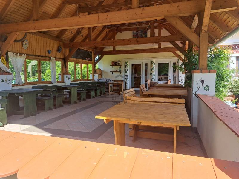Köveskálon, falu szélén, nyugodt természeti környezetben ajánlom figyelmébe ezt a 2012-ben, dupla telken épült, két szintes házat, mely meleg konyhás étteremként üzemelt.Így mostani elosztását tekintve, az alsó szinten (120nm) az étteremhez szükséges helyiségek találhatók, melyhez 60nm-es fedett terasz kapcsolódik.A felső szinten két szoba, és két fürdőszoba van jelenleg, de az alsó galériás rész megszüntetésével, egy 50nm-es bővítésre került sor, így akár további szobák, nappali, vagy konyha is kialakítható.Az épület összközműves, fűtését gáz kazán látja el, az emeleten klíma biztosítja a hűs levegőt nyáron.Az udvaron egy fúrt kút is található, mely akár az egész ház vízellátására is alkalmas a megfelelő gépészet bekötése után.A 2740nm-es telekből egy különálló építési telek is leválasztható, és tovább értékesíthető.Az ingatlan jó állapotú, gyönyörű környezetben található, és sok lehetőséget rejt, üzleti célból kiváló elhelyezkedéssel!A tulajdonos 13. kerületi budapesti lakást beszámol a vételárba, külön megegyezéssel!Amennyiben kérdése merülne fel az ingatlannal kapcsolatban, vagy szeretné azt megtekinteni, kérem keressen a megadott elérhetőségek egyikén!Az adatok kizárólag a megbízóink által rendelkezésünkre bocsátott információkon alapulnak. Fentiekre tekintettel, az adatok teljességéért, helyességéért és aktualitásáért nem vállalunk felelősséget.Az árváltozás, adatmódosítás és közbeni értékesítés jogát fenntartjuk, mindezekért jogi felelősséget nem áll módunkban vállalni. |