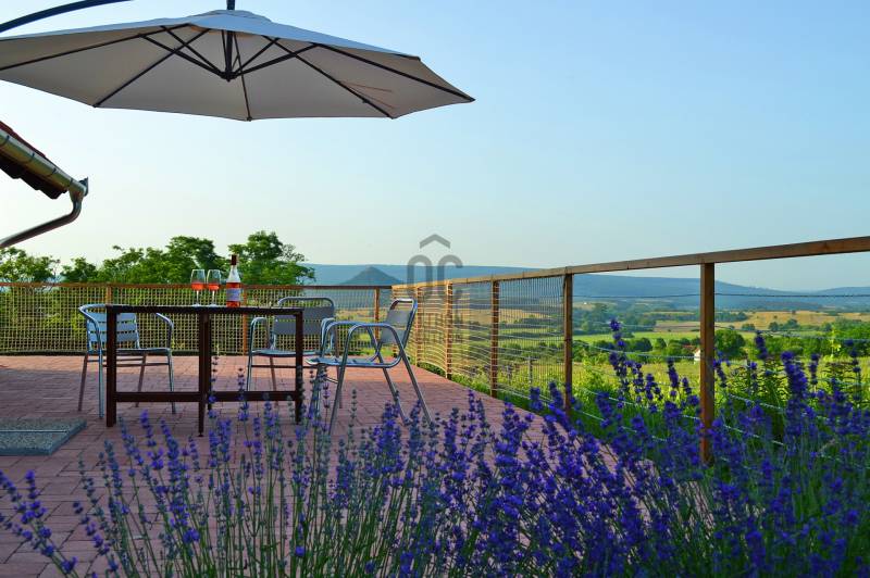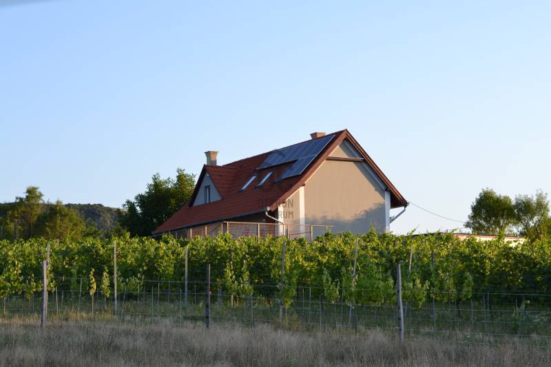 KIEMELT MEGBÍZÁS CSAK AZ OTTHON CENTRUM KÍNÁLATÁBAN!Megvételre kínáljuk , ezt a GAZDÁLKODÁSRA, SZŐLÉSZETRE, BORÁSZATRA, VENDÉGFOGADÁSRA, ÖNFENTARTÁSRA is alkalmas birtokot, ahol közvetlen szomszéd nincs, .Elhelyezkedése szerint Tapolca külterület és zártkert. A Halyagos-hegy északi felén fekszik. A terület a 90-es évek vége óta BIOGAZDASÁG részét képezte, azóta vegyszeres mezőgazdaság sem a szőlőültetvényt, sem az állattartó részeket nem érintette. A lakótérről:A konyha és étkező rendelkezik egy saját kis tárolóval, elektromos padlófűtéssel. A felső szinten található a fürdőszoba, a nagy méretű nappali és a két szoba. A fürdőben elektromos padlófűtés van, a többi helyiségben infra padlófűtés. Az egész szint fűthető, hűthető egy 3,5KW-os klímaberendezéssel. Itt található egy bazalt kővel burkolt kémény lemezkandallóval. A tűzifatároló az erkélyen található, amely igény esetén könnyen beépíthető egy plusz szobává. A lakás összesen körülbelül 70 négyzetméter, amely további körülbelül 50 négyzetméterrel a tervek alapján bővíthető. A ház környékén két kis minitó, jó néhány gyümölcsfa és cserje; számos díszítő és hasznos kis ágyás található, illetve egy 45 négyzetméteres terasz egy kombinált mosdóhelyiséggel. Áramhálózat ad-vesz mérős hibrid inverteres 10KWh teljesítményű 3 fázisú napelemrendszerrel van kombinálva – szaldós elszámolással.A saját vízrendszert fúrt kút táplálja, a lakás részére nitrátmentesítő és víz lágyító került beépítésre.Esővízgyűjtés megoldott, melynek összkapacitása kb. 4000liter. A pince 6 helyiségből áll körülbelül 150 négyzetméter. Az eredeti présház raktárnak használható, illetve itt található a napelem invertere, az 1800-as évek végén, vagy az 1900-as évek elején épített boltíves pincét megőriztük, körbeépítettük, hordóknak és palackoknak is tökéletes, szellőzése is rendben van. Palackos borok tárolására szolgáló helyiség a 2000-as években épült hozzá, majd 2019-ben épült egy 50 négyzetméteres tartálytér, mely összeköttetésben áll a kóstolótérrel-vendégfogadótérrel. A tartálytér 5,5KW-os, a kóstoló 3,5KW-os hűtő-fűtő klímával temperálható. Ehhez tartozik még egy tároló helyiség. Külső szigetelés itt 10cm XPS. A pince saját emésztőtartállyal rendelkezik. A ház porotherm téglából épült, a tetőtér beépített, mely nyílt cellás befújt szigetelést kapott. Homlokzat északi oldalán 15cm, a többi oldalon kitettségnek megfelelő vastagságú szigetelés található. A tetősík ablakok Velux márkájúak, külső hővédővel, belső árnyékolóval ellátottak. A tető héjazata creaton balance kerámia cserép. A tetőtéri ablakokból pazar kilátás nyílik a Tapolcai-medencére, Csobáncra és Hegyesdre. A „nagy szőlő” területe kb. 3 hektár, melyen Zeusz és Sárgamuskotály található. 2015 és 2016-ban került elültetésre. A tám rendszer komoly, tartós acél elemekből áll. 3 oldalról vadháló, a 4. oldalról szögesdrótos, vad biztos kerítéssel védett, elektromos tolókapuval zárható, jelenleg is használatban van. A szőlőültetvény 2027-től igény esetén kivágható. A „kis szőlő” területe kb. 0,2Hektár, melynek kb. fele Zeusz fajta, a másik fele pedig egy 20-25 fajtából álló csemegeszőlő gyűjtemény ellenálló, ízletes, impozáns fajtákból. A birtokhoz tartozik egy szigetüzemű elektromos kerítéssel körül határolt 1,5 hektáros legelő, melynek komoly része erdősült, nagy mennyiségű akácot tartalmaz. Továbbá tartozik hozzá egy 2m magas vadhálóval kerített gyümölcsös, „Tündérkert”. 0,28Hektár, melynek fele 2023-ban került újra ültetésre ősi extenzív gyümölcsfajtákkal, egy kis szerszámtárolóval és egy solar aszaló eszközzel. Található a területen egy kis gyümölcsös is villanypásztorral elkerített, zömmel már termő fákból, melyek körül lovakkal, juhokkal lehet legeltetni. Ez kapcsolatban áll az „istállóval”, ahol kiépített a víz és áramhálózat. Ehhez kapcsolódik egy kb 0,2Hektáros vágásérett akácos, mely legeltethető, vadhálóval került elkerítésre a szőlőültetvényektől. Található a területen egy új építésű Walipini, vagyis földbe süllyesztett melegház, mely legalább 2 hónappal meghosszabbítja az éves zöldségtermesztést. 2 komoly, biztonságos kutyakennel is található itt, az egyik nagy kutyákra van optimalizálva, míg a másik a legkomolyabb szökős kisméretű terrierek részére hoztuk létre. Három jól megépített tyúkudvar is létre lett hozva szigetelt, takarítható, róka-nyest biztos kivitelű ólakkal. Tartozik ehhez a részhez egy kisház, mely szerszámtárolásra, műhelynek tökéletes, a felső szint beépíthető vendégszobának, áramot földkábelen kapja. A birtok megközelítése a 77-es útról történik, mely kb. 450m-re van a háztól kavicsos és aszfaltos úton.Amennyiben felkeltettem érdeklődését, keressen bizalommal! |