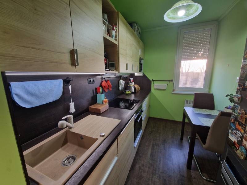 Tata központjába 2szobás IV. emeleti lakás eladó.Az ingatlan jellemző:Elektromos rendszer és műszaki tartalom:- Villanyhálózat csere az alábbi helyiségekben megtörtént: fürdő, konyha, előszoba.- Nappali áram: 40A – elegendő kapacitás nagyobb fogyasztókhoz is.- Éjszakai áram: 3 fázis (1x25A + 2x16A) – ideális hőtárolós kályhához és bojlerhez, kedvezőbb üzemeltetési költséggel.- 3,5 kW-os Midea klíma a hálóban – gyors és hatékony hűtés a nyári időszakban.Konyha:- Electrolux beépített gépek (mosogatógép, indukciós főzőlap, tűzhely) - Kivezetett szagelszívó.Belső terek, burkolatok, világítás:- Szobákban laminált parketta.- Előszoba, spejz, konyha: minőségi vinyl.- Fürdőszobában járólap és csempe.- Új beltéri ajtók.- Esztétikus dekorkő falburkolat - Mozgásérzékelős világítás az előszobában.- Előszoba és konyhabútor a vételár részét képezi.- Nappaliban spotlámpák – modern, hangulatos fényhatás.- Bútorok megegyezés szerint maradhatnak – gyors, külön beruházás nélküli költözési lehetőség.Környezet és épület:- Tiszta, rendezett lépcsőház, jó lakóközösség – kulturált környezet.- 20 cm homlokzati hőszigetelés + 20 cm tető hő- és vízszigetelés.- Műanyag nyílászárók redőnnyel. További információkért várom hívását! |