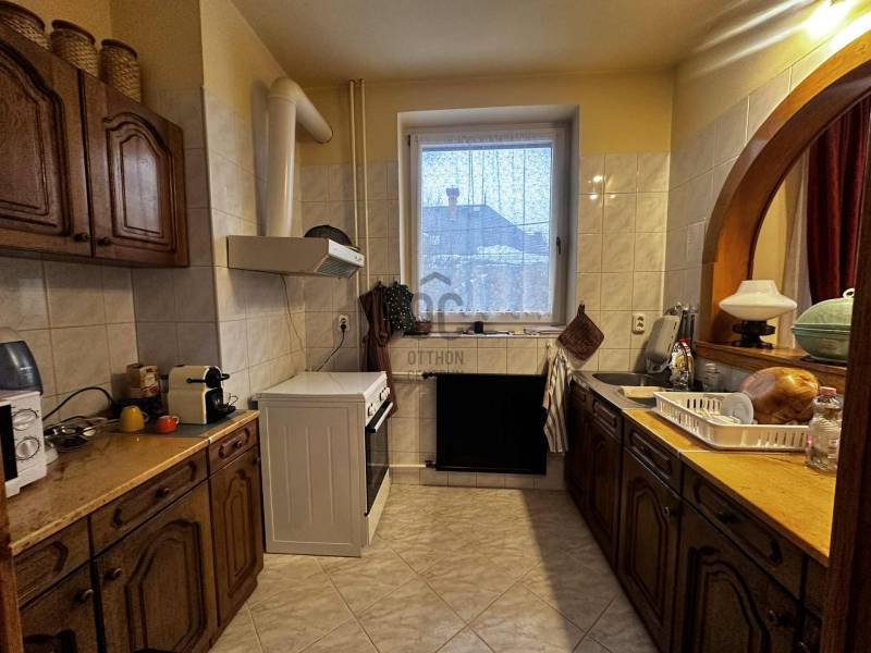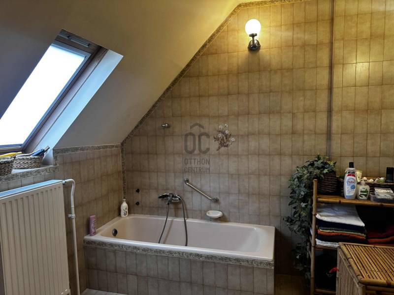 Budapest II/A kerület Pesthidegkút városrészben kínálunk egy nagyon jó alapadottságokkal rendelkező ikerházfelet.Az Üvegház utcai ingatlan, a Hidegkúti útról 8-10 perc sétatávolságra elérhető.-A téglából épült családi otthon 1989-ben épült-394 m2 telek tartozik hozzá-3 szintes (szuterén, félemelet, tetőtér)-A ház jól karbantartott, de felújítás, korszerűsítés nem történt az építés óta, így a jobb energetikai hatékonyság érdekében, teljes felújítás szükséges.A kapun belépve 4 lépcsőfokon jutunk be a házba. Az előszoba (6.88m2) és közlekedő (5.62m2) kényelmes méretű, a beépített szekrénybe cipők és a kabátok is jól elférnek. Innen balra léphetünk a konyhába, amely ablakos az utca felé és egy átadó pulttal az étkező felé is nyitott. A közlekedőből az étkező és nappali szobába léphetünk, amelynek éke egy szép, fatüzelésű cserépkályha. A nappaliból kiléphetünk a 21m2-es teraszra, innen pedig lesétálhatunk a kertbe. A földszinten továbbá egy wc és mosdó is helyet kapott és innen indul a világos lépcsőház is mint a szuterén, mint a tetőtér irányába.A tetőtérben a közlekedőből (5.55m2) 3 hálószoba (8.96m2, 8.43m2, 15.54m2) és egy kádas fürdőszoba (4,96m2) nyílik.A szuterén szint egyik legnagyobb előnye, hogy akár teljesen szeparálva, külön bejárattal rendelkezik!!! így akár két generáció is tud együtt élni a házban. (korábban volt is így használva) De alkalmas lehet akár otthoni irodának, műhelynek, hobby, vagy torna helyiségnek is. Ezen a szinten található a kazánház is. A ház melegét a cserépkályhán kívül, a 2018-ban kicserélt Bosch gázkazán biztosítja. A lakószobán túl (22.4 m2) egy zuhanyzós fürdőszoba (3,51m2) és 3 további helyiség is található ezen a szinten (5.2m2, 4,38m2, 1m2) melyből a legnagyobbat korábban teljesértékű konyhaként is használtak, ma csak tárolóként funkcionálnak.Közvetlenül a ház mellett, egy 16.6m2-es zárt garázs, előtte pedig egy fedett gépkocsibeálló is kialakításra került. A kertben egy betonalap is megtalálható, ami korábban egy medencének adott helyet.Nagyobb családoknak kiváló lehetőség lehet ez a ház. Felújítás után, egy igazán jól használható családi otthon varázsolható belőle.(Fontos, hogy az ingatlan jogilag lakóházként van nyilvántartva, de ikerházas kialakítása okán, az otthon start 3%-os hitelt nem lehet rá igényelni, mert a falai összeérnek.)Várom érdeklődését |
